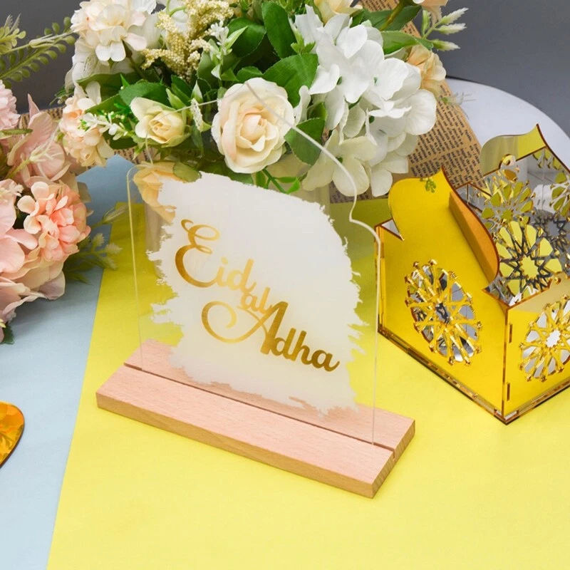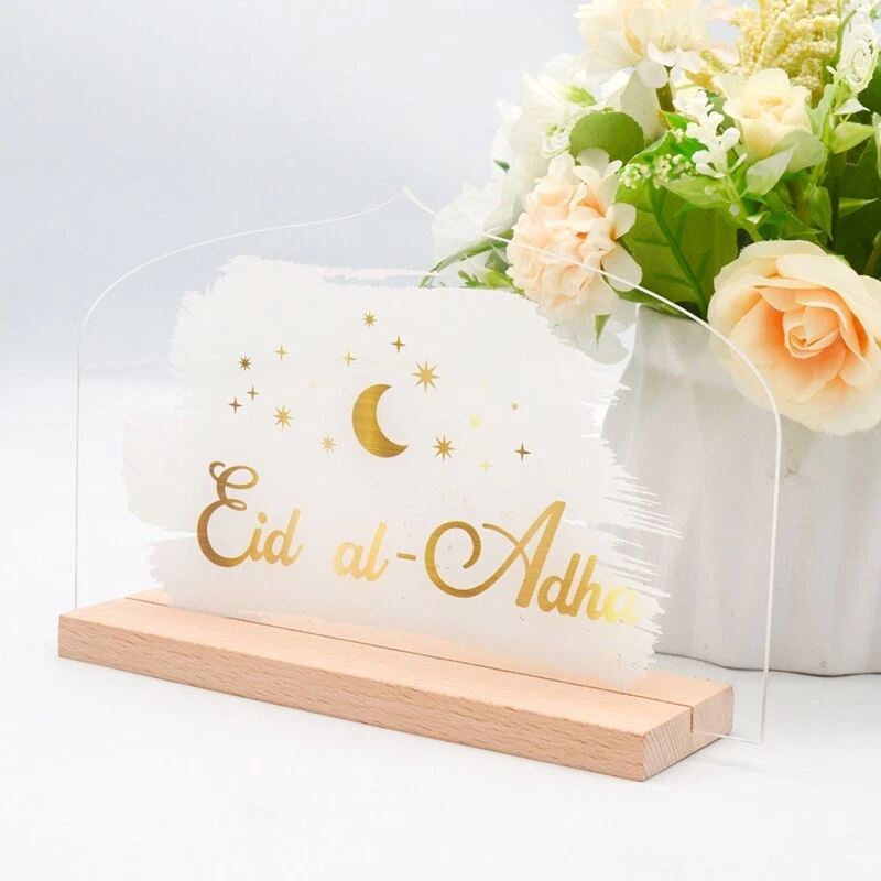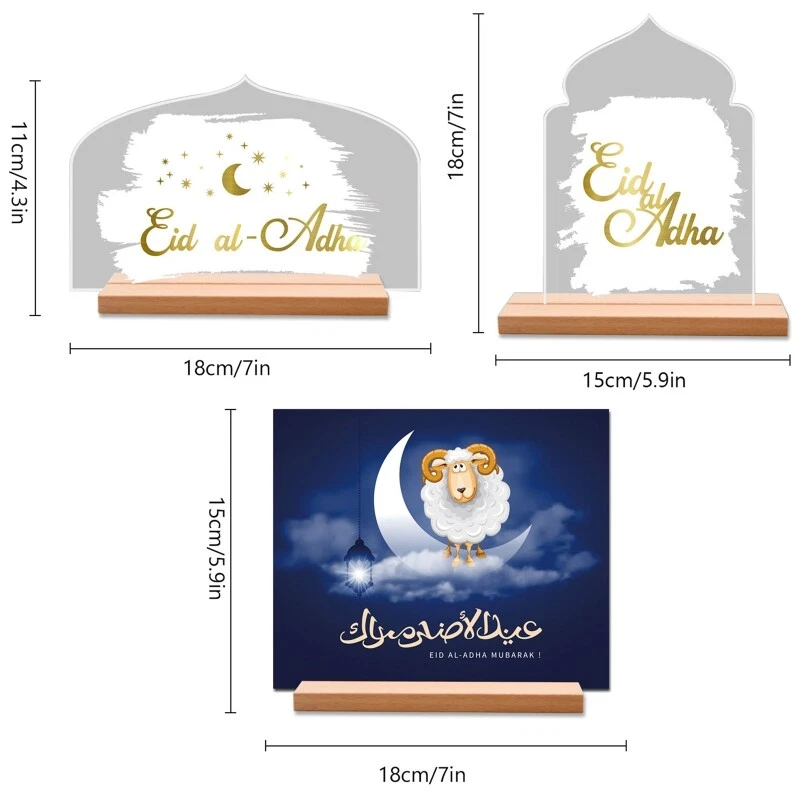 Description: and high Features: This Eid Decoration is acrylic material, which can be used for the long for time. Features the delicate Eid appearance which is very novel and for creative. great workmanship and excellent polishing process bring you the exquisite details and smooth edges. The Eid desk decor comes with the Eid themed bringing you more fun, excellent decorative effect. You can use it to decorate the home,living room, restaurant, office or other indoor scenes, unique and delicate. Specification: Product name: Eid decorations Acrylic Optional Color: 23, 24,25. As picture shown Size:app. 11 x 18cm / 4.33 x 7.08in Quantity: 1 pc Note: 1cm=10mm=0.39inch No retail package. Please allow 1-2cm error due to manual measurement. pls make sure you do not mind before you bid. Due to the difference between different monitors, the picture may not reflect the actual color of the item. Thank you! Package includes: 1 x EID Acrylic Decorations(other accessories in the picture is not included.)