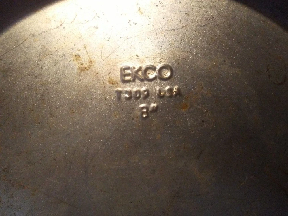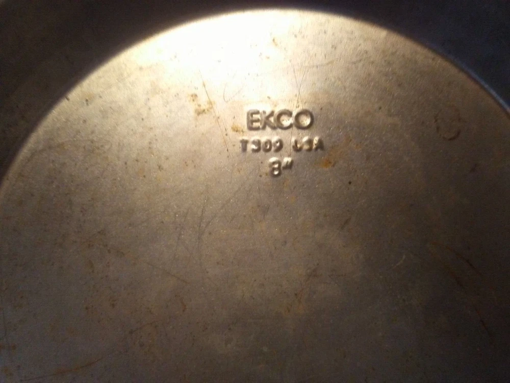 Time Period Manufactured:1950-1959Original/Licensed Reproduction:OriginalType:Pie DishBrand:EKCOAntique:NoMaterial:metalItem Height:1"Shape:RoundModel:T309Set Includes:Pie DishColor:SilverNumber of Items in Set:1Country/Region of Manufacture:United StatesType of Oven:Electric, GasItem Diameter:8"Theme:PieVintage:YesItem Depth:1"