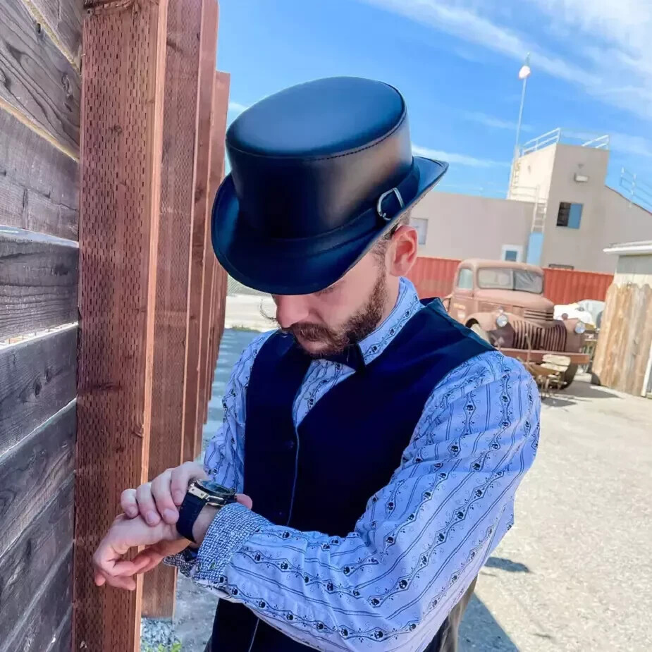 About this item Hand Crafted Leather Premium Quality Leather Hat , Each Hat is Hand made Description We offer a variety of leather colors Black & Brown • Exceptional Handmade Craftsmanship • Genuine Leather • 100% Pure Leather IF YOU ODER BULK AND BEST PRICE THEN CONTACT THANK YOU FOR SHOPPING