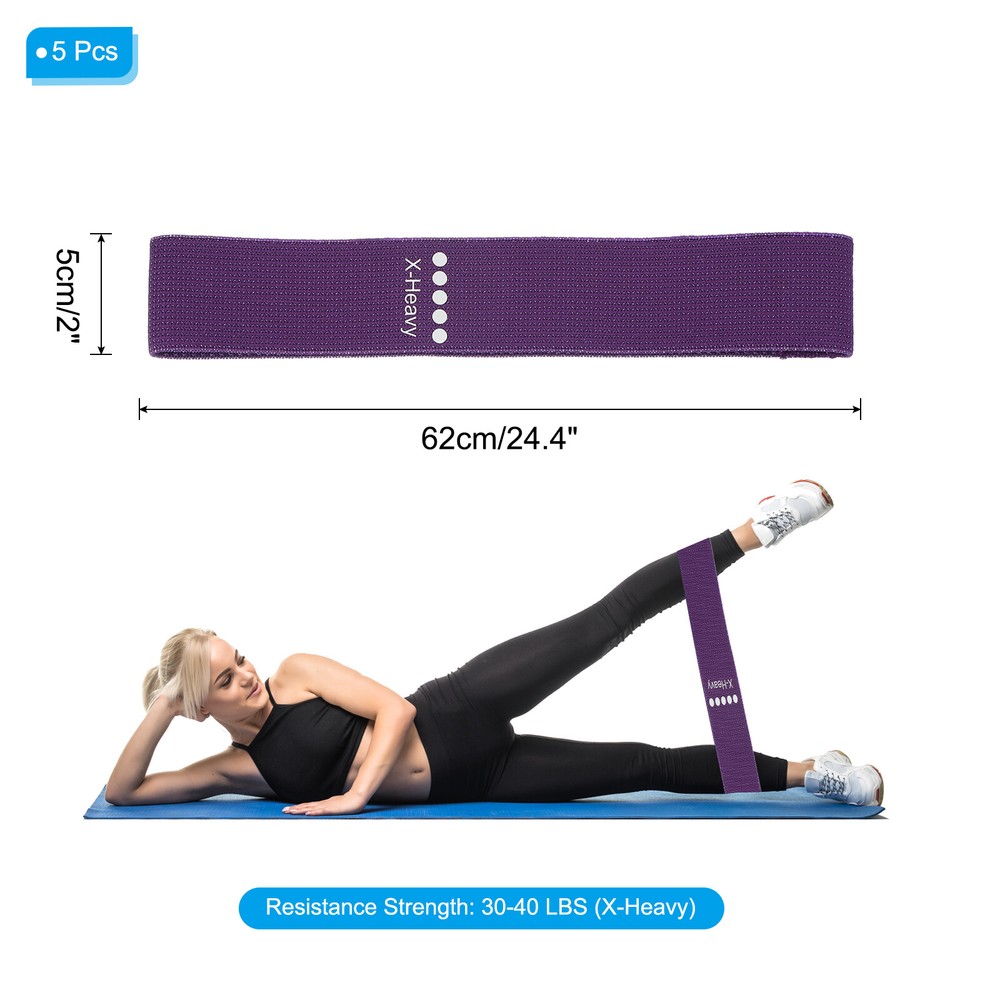 Document These resistance bands are suitable for working out, stretching, yoga, pilates, squats, lunges, glute bridges, kicks, etc, specifically target and engage your booty, legs and thighs. It is great for body-shaping and muscle-strengthening routines.SpecificationColor: PurpleMaterial: Polyester Cotton, Latex SilkResistance Strength: 30-40 LBS (X-Heavy)Size: 62 x 5 cm / 24.4 x 2 inch (L*W)Packing List: 5Pcs x Exercise BandsAdvantageFine workmanship, good elasticity, sturdy and durable, and wear-resistant. Workout band is lightweight and portable, perfect for home, travel, on-the-go, and gym, you can pack it in your fitness bag, backpack, or luggage, allowing for efficient training anytime and anywhere.Instruction5 levels of resistance levels from beginner to professional. X-Light is 5-10 LBS, Light is 10-15 LBS, Medium is 15-20 LBS, Heavy is 25-30 LBS, X-Heavy is 30-40 LBS.NOTE: Please choose the appropriate resistance band according to your needs. Elastic Fabric Resistance Bands Exercise Workout Bands X-Heavy, Purple 5 Pack These resistance bands are suitable for working out, stretching, yoga, pilates, squats, lunges, glute bridges, kicks, etc, specifically target and engage your booty, legs and thighs. It is great for body-shaping and muscle-strengthening routines. Specification Color: Purple Material: Polyester Cotton, Latex Silk Resistance Strength: 30-40 LBS (X-Heavy) Size: 62 x 5 cm / 24.4 x 2 inch (L*W) Packing List: 5Pcs x Exercise Bands Advantage Fine workmanship, good elasticity, sturdy and durable, and wear-resistant. Workout band is lightweight and portable, perfect for home, travel, on-the-go, and gym, you can pack it in your fitness bag, backpack, or luggage, allowing for efficient training anytime and anywhere. Instruction 5 levels of resistance levels from beginner to professional. X-Light is 5-10 LBS, Light is 10-15 LBS, Medium is 15-20 LBS, Heavy is 25-30 LBS, X-Heavy is 30-40 LBS. NOTE: Please choose the appropriate resistance band according to your needs. Hot Item Payment 1.We accept eBay payment . 2.Payment must be received within 7 business days of auction closing. Shipping 1.We ship to your eBay or Paypal address. Please make sure your eBay and Paypal address is correct before you pay. 2.Items will be shipped within 1-3 business day when we received payment. 3.Delivery time depends on destination and other factors. Description Policy Elastic Fabric Resistance Bands Exercise Workout Bands X-Heavy, Purple 5 Pack These resistance bands are suitable for working out, stretching, yoga, pilates, squats, lunges, glute bridges, kicks, etc, specifically target and engage your booty, legs and thighs. It is great for body-shaping and muscle-strengthening routines. Specification Color: Purple Material: Polyester Cotton, Latex Silk Resistance Strength: 30-40 LBS (X-Heavy) Size: 62 x 5 cm / 24.4 x 2 inch (L*W) Packing List: 5Pcs x Exercise Bands Advantage Fine workmanship, good elasticity, sturdy and durable, and wear-resistant. Workout band is lightweight and portable, perfect for home, travel, on-the-go, and gym, you can pack it in your fitness bag, backpack, or luggage, allowing for efficient training anytime and anywhere. Instruction 5 levels of resistance levels from beginner to professional. X-Light is 5-10 LBS, Light is 10-15 LBS, Medium is 15-20 LBS, Heavy is 25-30 LBS, X-Heavy is 30-40 LBS. NOTE: Please choose the appropriate resistance band according to your needs. Hot Item Payment 1.We accept eBay payment . 2.Payment must be received within 7 business days of auction closing. Shipping 1.We ship to your eBay or Paypal address. Please make sure your eBay and Paypal address is correct before you pay. 2.Items will be shipped within 1-3 business day when we received payment. 3.Delivery time depends on destination and other factors.