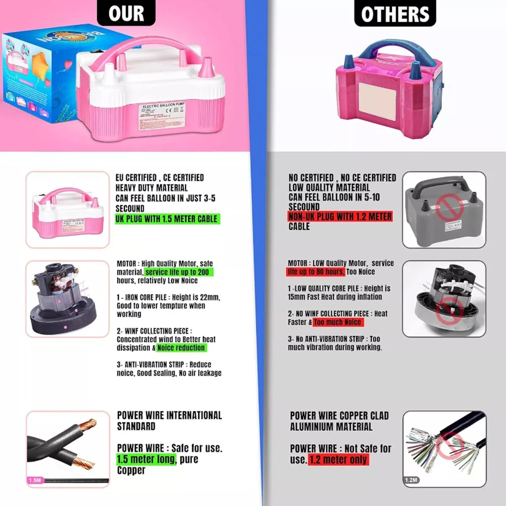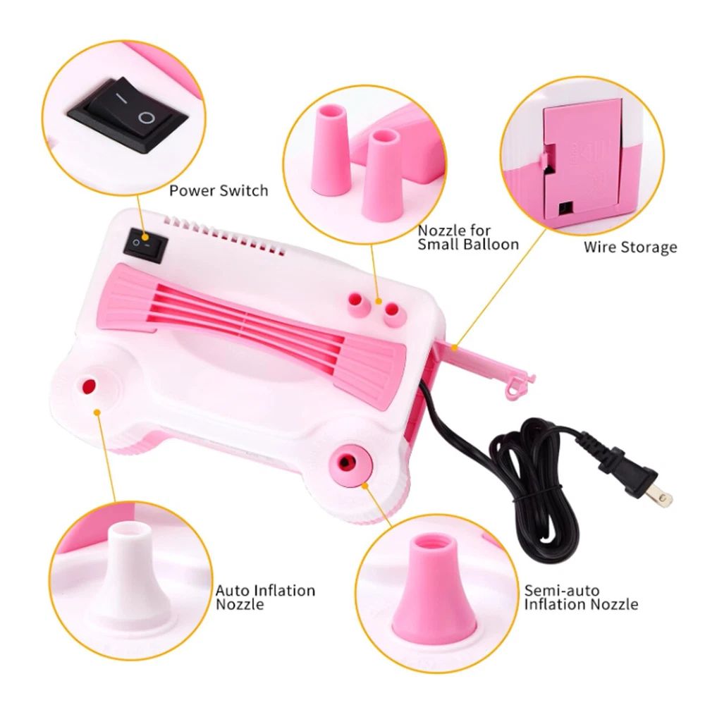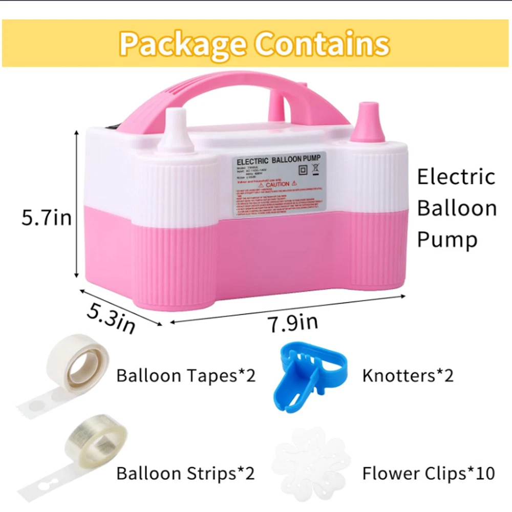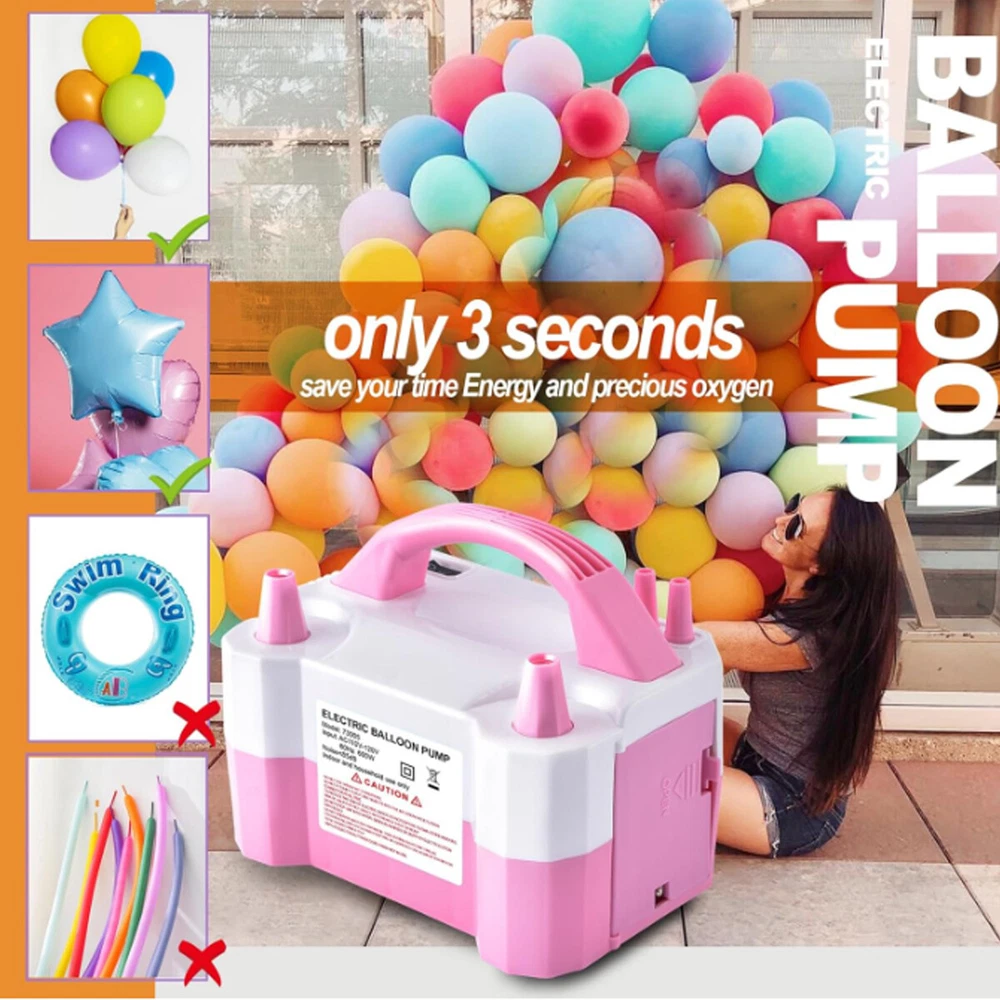 Electric Balloon Inflator Air Pump Massive Balloons Blower Dual Nozzle US PLUG Product Description CHOKING HAZARD – Children under 8 yrs. can choke or suffocate on uninflated or broken balloons. Adult supervision required. Keep uninflated balloons from children. Discard broken balloons at once. About this item: Versatile Package: This balloon pump kit contains 1 pink electric balloon pump, 2 tying tools, 2 balloon strips, 2 point tapes and 10 flower shape clips. The color is fashionable and these balloon accessories are all useful to make balloon decorations. Portable Design: Color: pink and white. Size: 7.9 x 5.3 x 5.7 Inches. Input voltage: 110 - 120V. Frequency: 50Hz. Power: 600W. Inflation Rate: 750 (L/min). Two Operation Modes: The electric balloon pump is easy to use, just connect the power and you could get started. It has 2 inflation modes. The automatic mode inflates faster, while the semi-automatic mode provides good control over the inflation speed. Safe to Use: This electric balloon pump features a 110-120V UL-Listed plug and was tested to be safe for a smooth and safe balloon-blowing experience. Wide Applications: This balloon electric air pump is applicable in all balloon decoration occasions, such as birthday parties, baby showers, weddings, graduation ceremonies, festivals, and other party decorations. But please be noticed the air pump fills the balloon with air, not helium. Packing list: 1x Electric Balloon Pump with Plug 2x balloon strips 2x point tapes 2x tying tools 10x flower shape clips H azard warnings : Children under 8 years old may choke or suffocate from uninflated or ruptured balloons. Adult supervision is required. Stay calm Payment Delivery details Terms of salas About us Contact us Payment We accept major credit card payments via Paypal. Payment must be received within 7 days of auction closing date. If you do not contact us or respond to our email within 7 days of auction closing date, we do not guarantee the item availability. We reserve the right to cancel any unwanted bids. Delivery details Flat rate shipping charge will be applied to the 48 continental USA States. Extra shipping fee will be charged to ship item(s) to HI, AK, PR, GU, VI, APO, FPO . Item(s) will be shipped via UPS Ground, UPS or USPS within 3 Business days after payment is received. A Tracking Number will be updated as soon as item(s) is shipped. Item(s) will be shipped to your Paypal confirmed address. International buyers please note, we are not responsible for any custom duties, taxes and brokerage fees. For some oversize packages, we may not be able to ship via USPS. Terms of salas All of our items are professionally made and guaranteed to fit. A brief installation manual and hardware included. A professional installation is always recommended. Please send a message over eBay if you have any questions. We accept returns within 60 days after you received the item(s). All returned items must be new and in original package. The buyer will pay return shipping fees. No refund will be made for damaged parts. Shipping and handling fees and insurance fee are not refundable. About us We are specialize in research,development and production of high-quality aftermarket car and truck accessories.We are especially professional on roof cargo management,Our mission is to help carry your load by providing the roof racks that makes it easy to get what you need to your destination. Contact us Your satisfaction is our top priority. We stand behind all products that we sell. If you have a problem with any of our listings, please allow us to work it out. Our business times are Monday-Friday 9:00- 5:00 Pacific Time. Office closes on weekends and holidays. We are striving to earn a 5- star rating with every purchase. Please take a moment to leave us a positive feedback when you receive your order. If you are not satisfied, please let us know before you leaving feedback. Please always include your purchase eBay item number in the mail whenever you have any questions. Copyright © 2023 Dianxiaomi