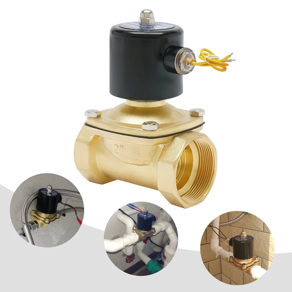 Specification Model: 2W500-50 Color: Gold, Black Material: Brass, Iron Style: Modern Voltage: AC 110V Type: American Standard Surface Treatment: Polished Process Thread Type: NPT Gasket Type: NBR Orifice: 50mm/1.9inch Pipe Size: 2inch/5cm Working Temperature: -5-80℃/-41-176℉ Operating Pressure: 0-10kg/cm² (0-142psi) Working Medium: Air, Gas, Water, Oil (Exclude Gasoline&Kerosene) Type: Two-way, Normally Closed Flow Direction: One-way Transmission Mode: Direct-acting. Net Weight: 2.3kg/5.0lbs Gross Weight: 2.4kg/5.2lbs Package Size: 18*13*9.5cm/7*5*3inch Product Size: 12.3*9.3*17.6cm/4.8*3.7*6.9inch Thread Diameter: 5.8cm/2.3inch Electric Solenoid Valve Brass Water Air Gas Normally Closed 2-inch NPT AC110V 2" NPT Electric Solenoid Valve 110V AC Normally Closed Solenoid Valve Description Made of high-quality brass and iron, this electric solenoid valve is strong and durable. It can quickly open or close the flow and can be used many times. The threads and a gasket ensure a tight connection. It is applicable to non-corrosive water, gas and other media. Details Round Edges: Round edges rather than sharp edges can avoid scratching your hands. Two-way Type: The two-way type makes it easy to be connected with pipes. Application It is suitable for hot or cold water (-41-176℉), gas, air, low viscosity fluids (<20 cst), oils and hydrocarbons, or diesel fuel. It can be used in DIY projects, medium-temperature applications, harsh chemicals, flow control of irrigation systems, reverse osmosis systems, home brewing, home swimming pools, home water towers, and industrial wastewater discharge. Specification Model: 2W500-50 Color: Gold, Black Material: Brass, Iron Style: Modern Voltage: AC 110V Type: American Standard Surface Treatment: Polished Process Thread Type: NPT Gasket Type: NBR Orifice: 50mm/1.9inch Pipe Size: 2inch/5cm Working Temperature: -5-80℃/-41-176℉ Operating Pressure: 0-10kg/cm² (0-142psi) Working Medium: Air, Gas, Water, Oil (Exclude Gasoline&Kerosene) Type: Two-way, Normally Closed Flow Direction: One-way Transmission Mode: Direct-acting. Net Weight: 2.3kg/5.0lbs Gross Weight: 2.4kg/5.2lbs Package Size: 18*13*9.5cm/7*5*3inch Product Size: 12.3*9.3*17.6cm/4.8*3.7*6.9inch Thread Diameter: 5.8cm/2.3inch Solenoid Valve Installation Instructions Please clean and rinse the impurities in the pipeline before installation. The thread should be wound with tape. Be careful not to drop the debris into the pipeline to prevent blocking the solenoid valve. When installing, keep the arrow direction on the valve body consistent with the flow direction of the medium. If there is reverse pressure, a check valve shall be installed. All valves are unidirectional, and they need to be installed in the direction of the arrow when in use. If the connection direction is opposite, the valve will not start/close normally. To extend the service life of the solenoid valve, the installation should be horizontal and the coil should be installed vertically upwards. After the solenoid valve coil outlet wire (connector) is connected, it should be confirmed whether the contact of electrical components is firm. Shake or loose may cause the solenoid valve unable to work. Solenoid valves that are out of service for a long time should be cleaned of impurity condensation before use. Solenoid valves are not suitable for fluids under the following conditions: A. Changing into a liquid by heating and into a solid by cooling. B. Viscosity greater than CST20 C. Fluid with impurities that are easy to block the valve. Pay attention to the insulation of the circuit. The wire has no requirements for positive and negative poles. The valve is not a continuous working valve, and the continuous use time in a single cycle shall not exceed 2 hours. Overuse will shorten the service life of the valve and may cause the valve core to burn out. Package Included 1* Electric Solenoid Valve Notes 1. Due to the chemical composition of brass, this valve should not be used with drinking water. 2. All solenoid valves need some pressure to actuate. 3. Please don't use the gasket for gasoline or it will corrode the gasket and can cause serious gasoline leakage or fire. 4. When it is used in low temperature or freezing environment, please heat the solenoid valve or set thermal insulation measures. 5. When the solenoid valve is installed in the pipeline that needs continuous production, it is better to build a bypass pipeline to facilitate the repair and maintenance of the solenoid valve and avoid the impact on production. 6. Please allow the slight color difference caused by the shooting light and 1-3cm error due to manual measurement, and make sure you do not mind before ordering. Payment Delivery details Terms of sales About us Contact us Payment We accept ebay payment 。 Fees such as import duties, taxes are not included in the item price or shipping costs. These charges are the buyer's responsibility. Delivery details Shipping: 2-9 working days to: USA Terms of sales We maintain high standards of excellence and strive for hundred percent customer satisfaction. Feedback is very important to us. We hope that you contact us immediately before you give neutral or negative feedback, so that we can address your concerns. It is impossible to address issues if we do not know about them! About us Your satis faction is our ultimate goal. We work hard to earn your trust and future business. Our certified technicians have tested each item before shipping. The unit comes with 1 year limited warranty on all manufacturing defects. a) If you receive a defective item, you may return it or ask for a discount. Please contact us within 14 days after you receive the package. b) What you returned must be intact and in its original packaging as re? u. Customer is responsible for shipping costs of the returned item. c) We will cover the cost of shipping back t with the shipping rate indicated in the registration page. We will send you a new unit or refund the fu