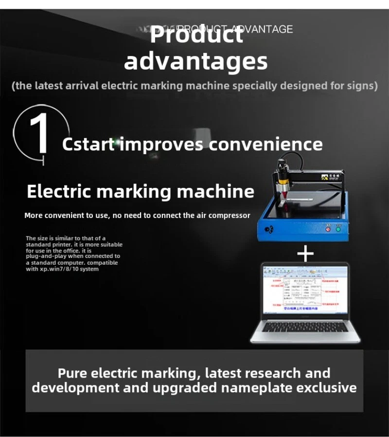 Electric marking machine metal electric marking machine aluminum nameplate stainless steel printer lettering and coding machine Lifting height: 20mm Marking speed 50mm/s Marking depth 0.05-2(mm) Needle hardness 96HRA Needle distance 0.5-3(mm) Voltage power 220V 400W