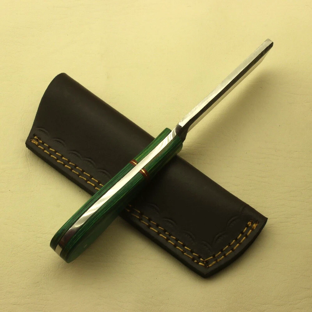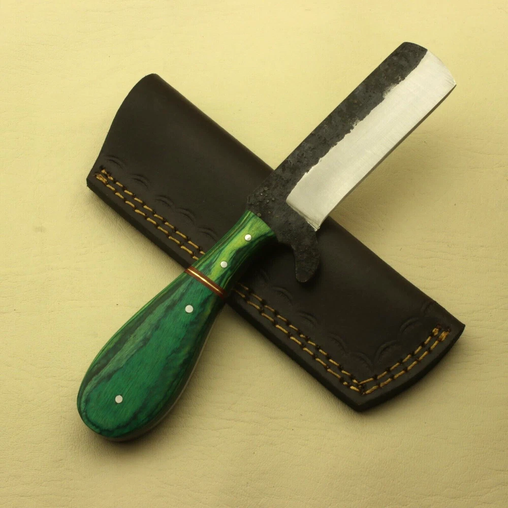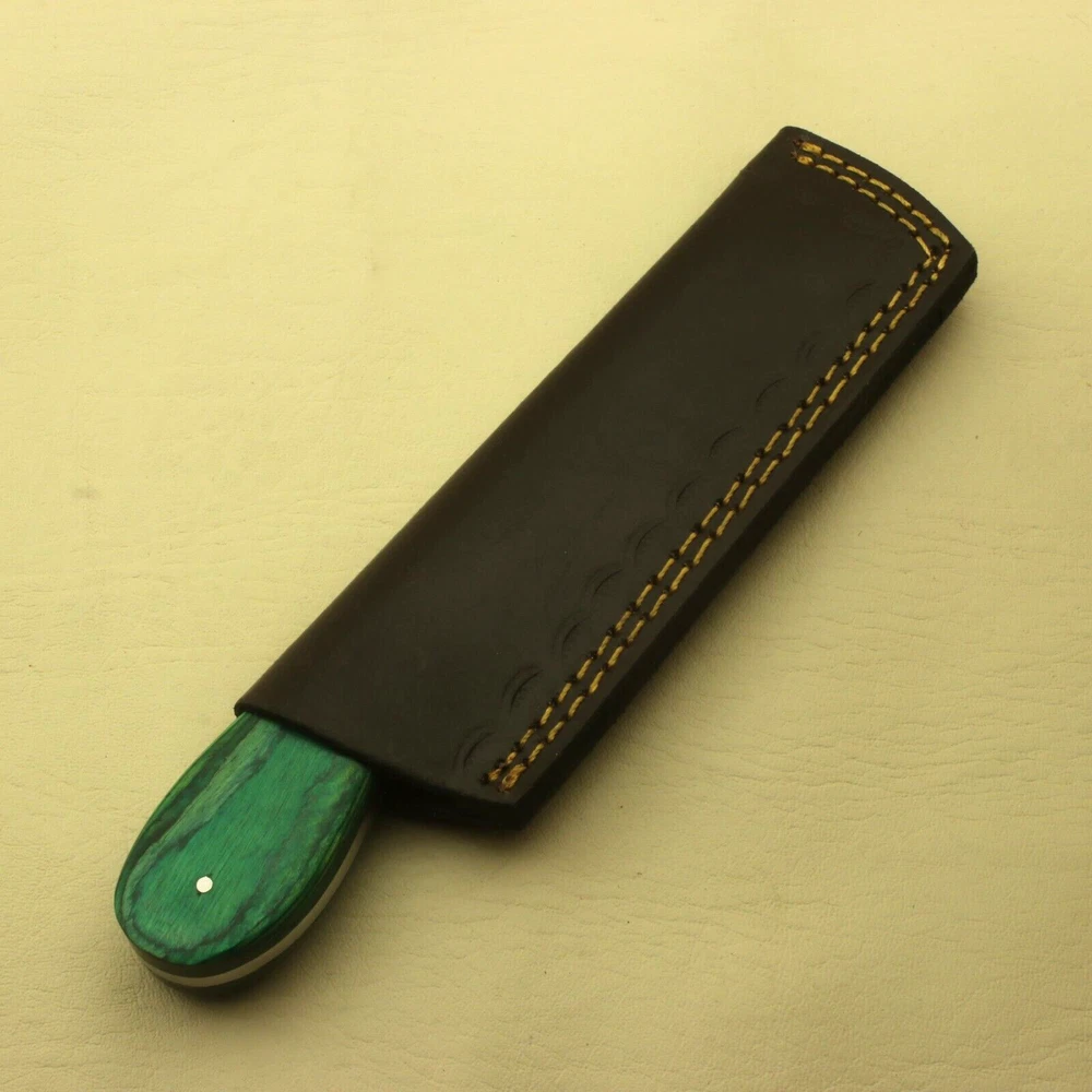 Modern pattern welded Damascus steel, 512 layers of hard stainless are welded to many layers of carbon steels. The pattern is designed, the blade is forged-welded, twisted, drilled, flattened, grounded, and forge-welded some more. The stack of steel is formed into a billet, and these billets or bars are then used to make a knife. The knife is profiled, ground, heat treated and finished with additional processes like etching and bluing to reveal the striking pattern. Blade is tempered & edge is fully sharpened. Perfect for hunting, fishing, hiking, camping, boating, backpacking, or any other outdoor adventure. It is also a key item to add to your survival tactical gear! Total Length: 8in" approx Blade length: 4" approx Handle Length :4" approx Blade Material: Carbon steel 15N20 & 1095 Hand-Forged Blade Hardness: 50-58HRC on Rockwell scale Total Layers: 512 Handle Material: Pakka Wood Care Instructions: Keep the blade dry after each cleaning. Warning: Take care when removing product from packaging. Keep fingers clear of blades. Store away from children. Complimentary gift messages *Gift wrapping service available for minimal additional fee ADD ONS: *Custom orders for 10 or more pieces. You can choose & submit your own handle or design. LIFETIME WARRANTY No premium knife is complete without a lifetime warranty; our masterpiece knife is fully covered for life, We do sell wholesale, please contact us for special discounts on bulk orders. FEEDBACK POLICY: YOUR FEEDBACK IS VERY IMPORTANT FOR US, IF THEIR IS ANY KIND OF PROBLEM PLEASE GIVE US OPPORTUNITY TO SORT THE ISSUE