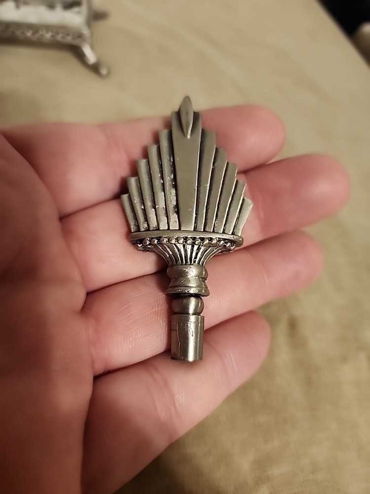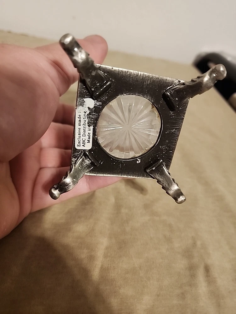 This perfume bottle is a charming vintage-style piece with a decorative glass body and a silvertone stopper that adds a touch of elegance. Though preowned and slightly cloudy from past use, it cleans up nicely and displays beautifully. The square footed base and art deco flair make it a lovely addition to any collection or vanity. Perfect for someone who appreciates classic charm!