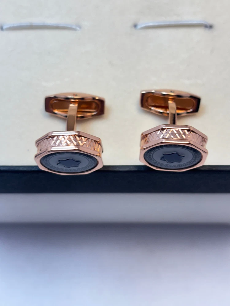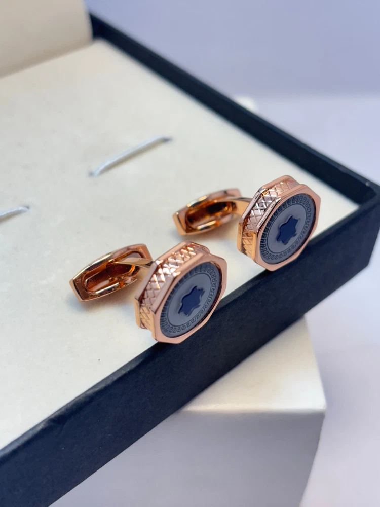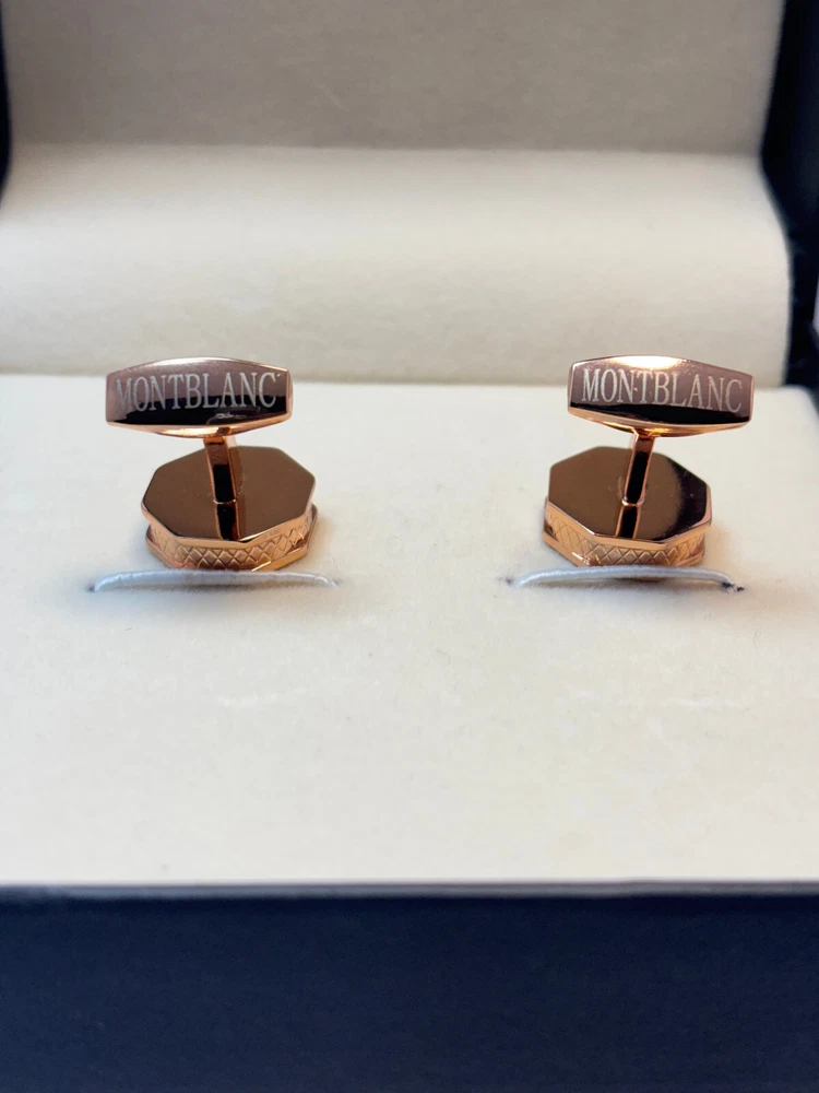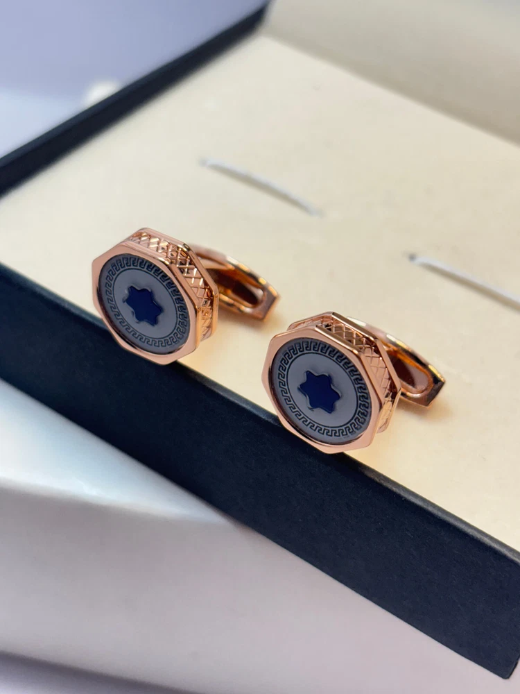 Elegant Montblanc Men's Blue Star Octagon Style Rose Gold Color Cufflinks Set