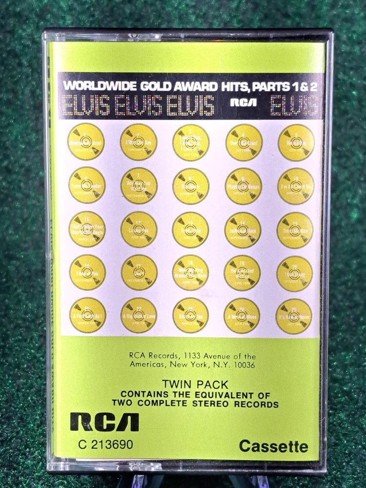 Immerse yourself in the timeless appeal of Elvis Presley with the "Worldwide Gold Award Hits, Parts 1 & 2" cassette collection. Compiled in 1974, this album features a jewel case standard for safekeeping and showcases the classic rock style that has enduring fans across generations. The gold-colored cassette and excellent condition inlay affirm the care given to this treasured compilation. With the legendary RCA Records label and the iconic catalog number C 213690, this release is a testament to Elvis's global impact. Delve into the rock 'n' roll genre with this double cassette set, which offers a nostalgic trip through the king of rock's most celebrated hits. It's a must-have for collectors and enthusiasts keen to complete their Elvis Presley anthology.