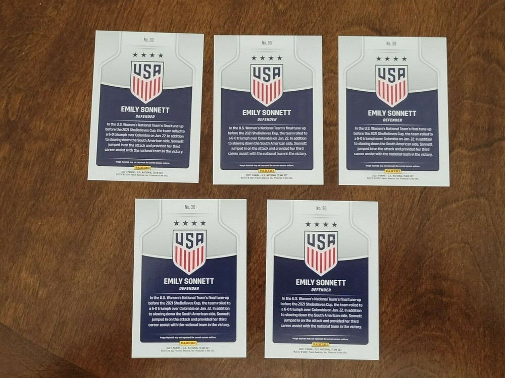 Lot of 5 Emily Sonnett 2021 Panini Instant United States Soccer Women's National Team Card #30 Each lot purchased equals 5 cards. 1 lot = 5 cards 2 lots = 10 cards etc. We always package our items with extra padding to make sure they arrive to you safely.