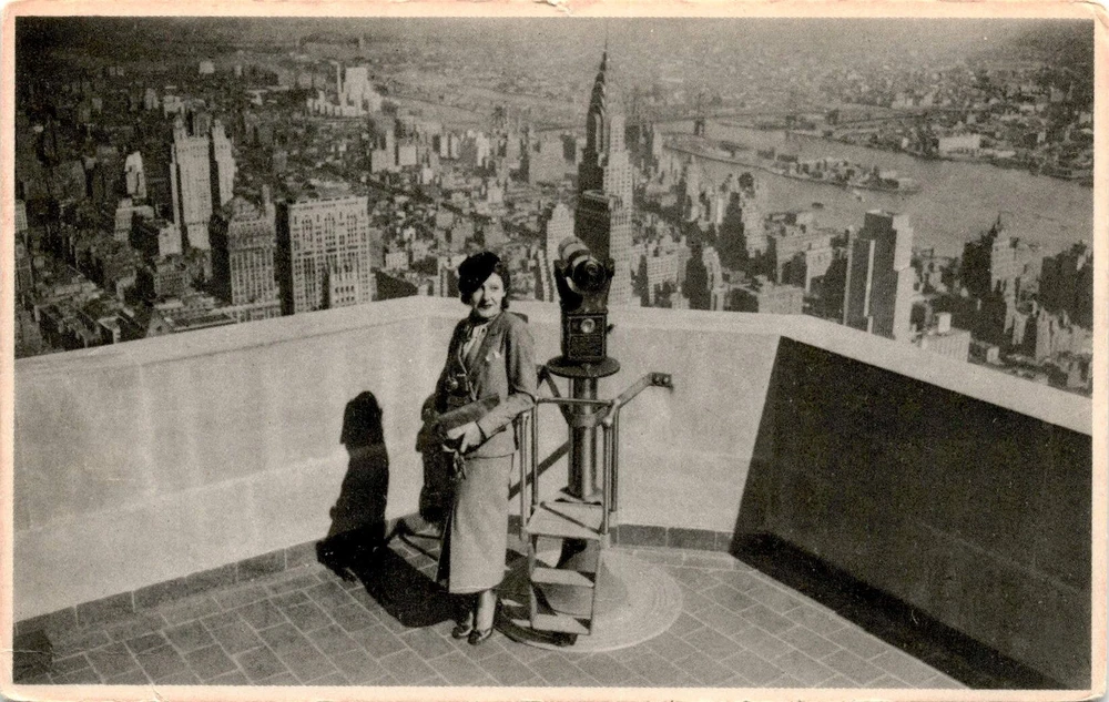 MAKE AN OFFER. THE MORE YOU BUY THE BETTER DEAL I WILL ACCEPT The postcard advertises a service by Empire State Studios, Inc., located on the 86th floor terrace of the Empire State Building in New York. The service offers visitors the opportunity to have their own photograph taken with the iconic Billion Dollar skyline in the background, creating a personal souvenir of their visit to the Empire State Building.