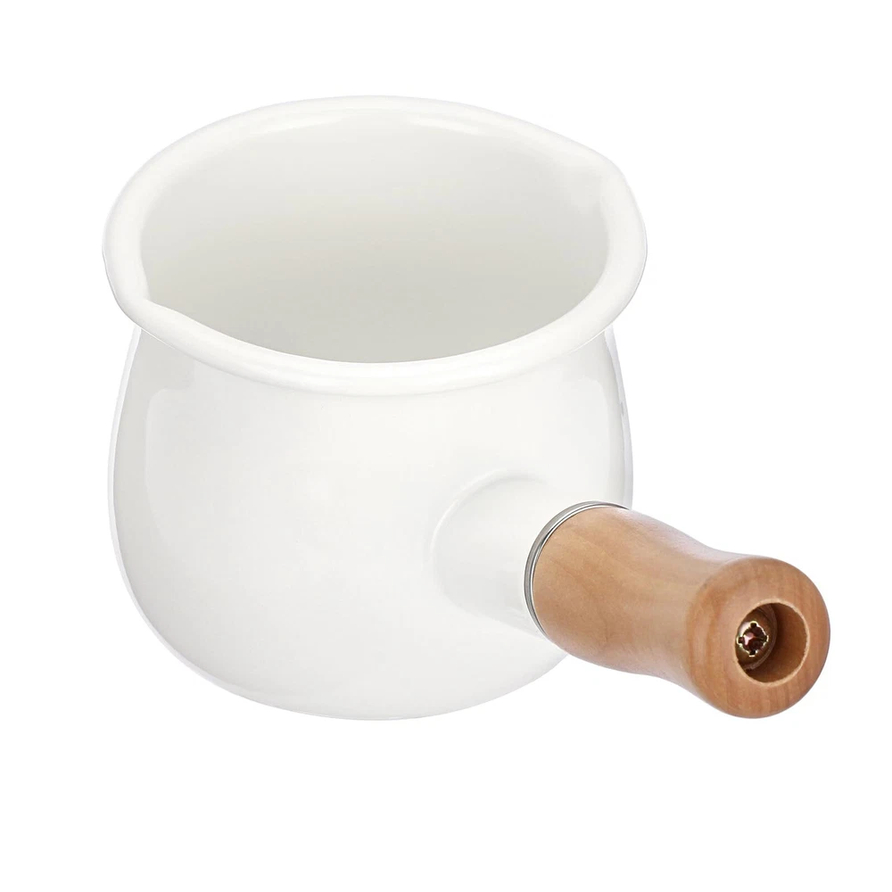 BSTKEY Enamel Milk Pan, Mini Butter Warmer Milk Pot Saucepan Small Cookware with Wooden Handle 2 Pour Spouts for Heating Milk Melting Butter Boiling Water (550ml, White) ELEGANT ENAMEL BUTTER WARMER POT - Size: 4 x 3.3 inch, Capacity: 550ml. With a flat bottom, fast heat conduction and even heating, this enameled crock pot is very easy to use. HIGH QUALITY ENAMELED COOKWARE - This milk pitcher is made of the heaviest gauge enamel, non-stick interior, sturdy and firm, easy to clean. Ceramic stove/Electric stove/Halogen stove/Induction cooker safety. THOUGHTFUL DESIGN - Wooden handle is comfortable, safe, non-slip, and protect your hands from heat. Double pour spouts design, easy to pour for right and left hand use. MULTI-FUNCTIONAL USE - This sauce pan measures is suitable for heating sauces, gravies, butter, porridge, baby food, eggs, milk or melted chocolate and other cooking. A white enamel milk pan with simple and elegant design, which is easy to match with other tableware, and adds excitement to your kitchen. CUSTOMER SUPPORT - If you have any questions, please feel free to contact us, we promise to reply you as soon as possible and provide you with a satisfactory solution.Package includes: 1x Enamel Milk Pan (Accessories are not included) SHIPPING - We offer FREE shipping on all orders! - We ship within 3 business days of payment, usually sooner - We use a selection of shipping services such as UPS, FedEx, USPS etc - We only ship to the lower 48 states, no APO/FPO addresses or PO Boxes allowed International buyers – please note: Import duties, taxes, and charges aren't included in the item price or postage cost. These charges are the buyer's responsibility. - Please check with your country's customs office to determine what these additional costs will be prior to bidding or buying. - We have confidence in our products, but if you are not fully satisfied please contact us within 30 days of purchase and you will get full refund. * Order Cancellation Policy ** You can return a product for up to 30 days from the date you purchased it. 1. The seller reserves the right to cancel the special case only due to eBay cancellation fee. 2. The decision of seller is the final. 3. The seller will respond to the cancellation request within 2 business days. Please wait for the result of cancellation. 4. In case the cancellation is not completed by some reasons, the buyer can follow the options below to get the refund. 4.1 The buyer can reject the item when it arrives. 4.2 The buyer can send the item back to the seller within 30 days If the buyer receives item (USA Shipment ONLY). The seller will provide the FREE return label to the buyer when the buyer opens " Return Item" case on eBay by using the reason as "Change my mind" ONLY. 5. When buyer has placed the order. The order will be processed and completed by automatic warehouse system within 5 minutes. In case that buyer sends the cancellation request after 5 minutes of placing the order, the request will be rejected. **Sending direct message to cancel the order is not allowed for every case.* Return Policy For the return case - If buyer would like to return the items for refund or replacement, please CONTACT SELLER to receive the free return label from seller. The refund or replacement will be processed with the tracking number of return label which is provided by seller only. The other ways of return which are not approved by seller will not be processed for the refund or replacement. CUSTOMER SERVICE - We try our best to make sure every customer is completely satisfied. - If there's a problem, feel free to message us! - We're happy to help.
