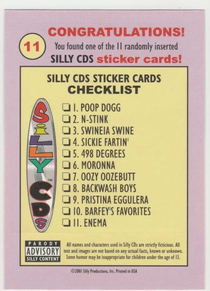 Enema #11 Eminem Silly CDs Marshall Mathers LP Real Slim Shady Way I Am Stan chase insert short print SP sticker personal stock photos centering of cards may vary compared to listed images