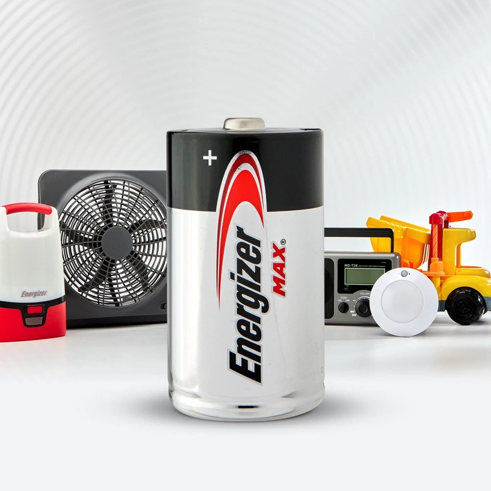Product Description Energizer MAX D Batteries D Cell Alkaline Lithium General Purpose Batteries 2 Count (Pack Of 2) Energizer MAX D Alkaline Batteries. Energizer provides long lasting power for your everyday devices, whether you need replacement D cell batteries for high-tech flashlights, radios or children's toys. Made to last, not to leak, these Energizer D batteries have a shelf life of up to 10 years, so they're ready to keep your devices operating when you need them most. Each battery pack contains D batteries to keep your supply of backup batteries well stocked. Depend on Energizer MAX D batteries to fuel your everyday electronics, whether you're at home, work or play. Long-lasting power and innovation is what the Energizer MAX family is all about – up to 10-year shelf life for D batteries. Plus, Power Seal Technology is the Energizer innovation that delivers energy you can rely on. Energizer MAX Alkaline Batteries, D, 2 Batteries/Pack Dependable, long-lasting performance in a wide range of devices. Makers of the world's first zero mercury AA alkaline (commercially available since 1991); battery can be disposed with regular household trash. 10-year shelf life. Battery Type: Alkaline; Battery Size: D; Voltage: 1.5 V; Material(s): Alkaline Manganese Dioxide. Long-life alkaline From the Manufacturer Made in U.S.A. 2 pack of Energizer MAX D Batteries, Batteries D Size These alkaline D batteries provide long lasting power for your everyday devices The power you depend on for high-tech D battery flashlights, radios, toys and other high-drain devices MAX D alkaline batteries that hold power for up to 10 years in storage Energizer MAX D batteries are made to last. Not to leak Feel confident knowing you have the long-lasting power and protection you expect from Energizer MAX D battery pack that holds power for up to 10 years in storage D Alkaline batteries that are made to last. Not to leak. Also available in AAA batteries, AA batteries, C batteries and 9V batteries Alkaline batteries provide a long-lasting power source Use in calculators, Pencil sharpeners, cameras, flashlights and more Package Dimension : 3.4 centimeters L x 9.3 centimeters W x 13.0 centimeters H Country of Origin: UNITED STATES
