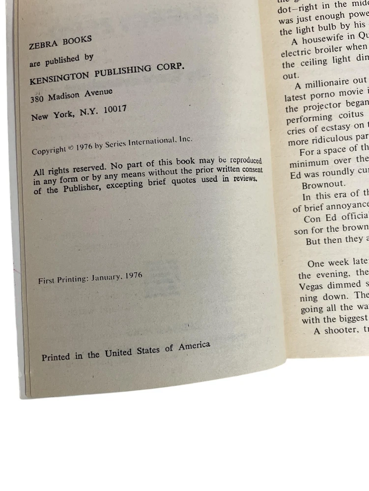 You will receive the same book in the photos. Dive into the thrilling world of 'Energy Zero' by Gary Brandner. This gripping sci-fi novel, published by Zebra Books, follows Colin Garrett as he battles wits in a power-deprived world. A must-read for fans of brainy adventures and electrifying mysteries!