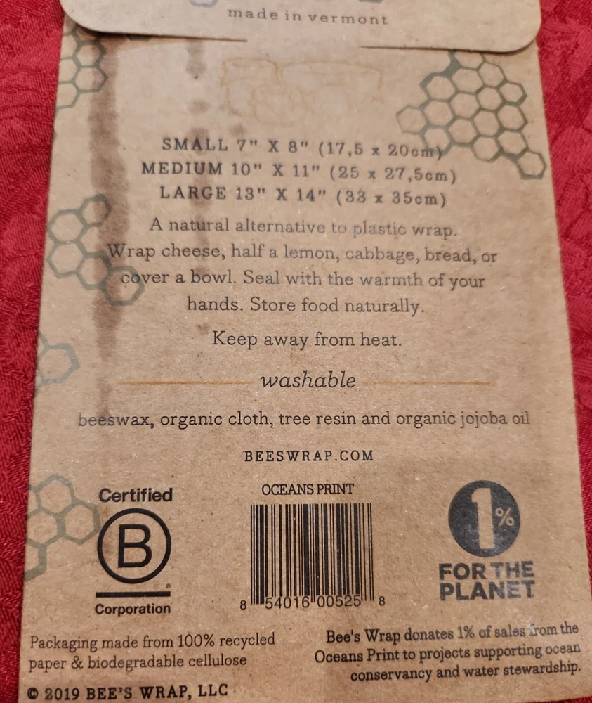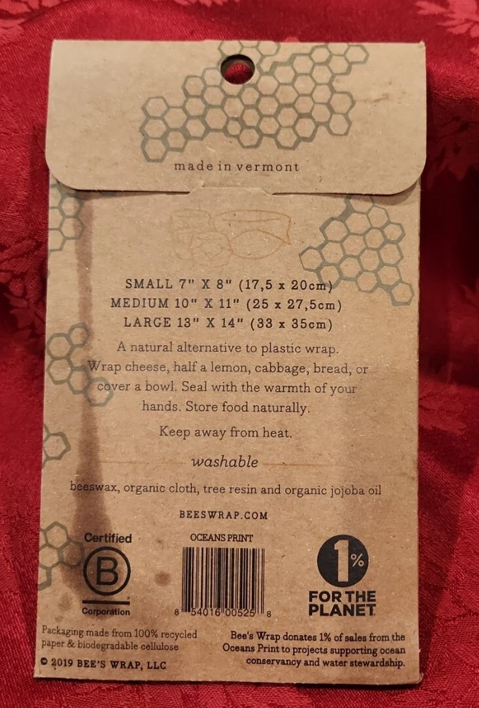 Bee's Wrap Assorted 3 Pack Made in USA Reusable Beeswax Food Storage OCEANS Print New. Package may have been opened. Some beeswax has soaked through the cardboard packaging.