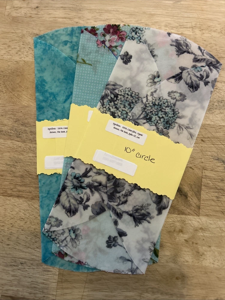 Wrap up your food in style with these reusable organic beeswax food wraps. Made in the USA with 100% cotton material, these wraps come in an assorted pack of 3 10” circles with assorted floral and geometric patterns design. The wraps are perfect for storing leftovers, and the prints add a touch of beauty to your kitchen. Made with organic beeswax, 100% cotton material, pine resin and jojoba oil, these wraps will save you and the planet from overuse of plastic wrap. The wraps are in a convenient 3 pack of 10” Circle. Simply warm the wrap up with your hands by rolling it a few times. The beeswax will soften up and you can mold the wrap around a bowl, a sandwich or the other half of your avocado. Do not use with raw meat, highly acidic foods or liquids. Simply wash with a little cool water and mild soap to reuse again. With proper care they will last about a year. Get your hands on these eco-friendly wraps and say goodbye to plastic food containers.