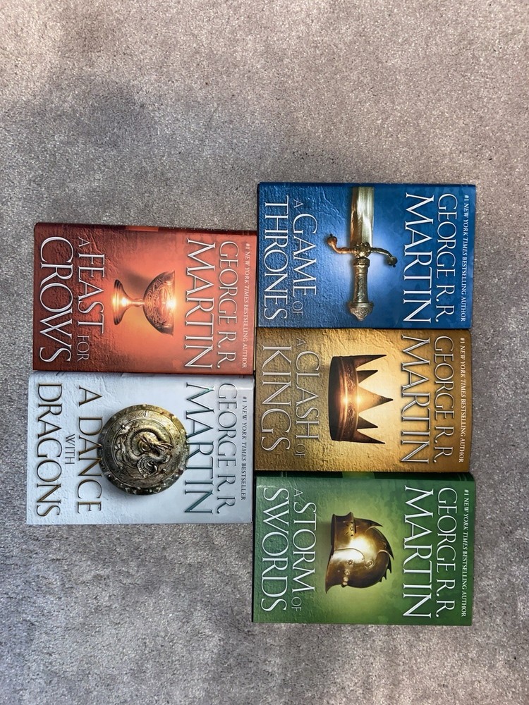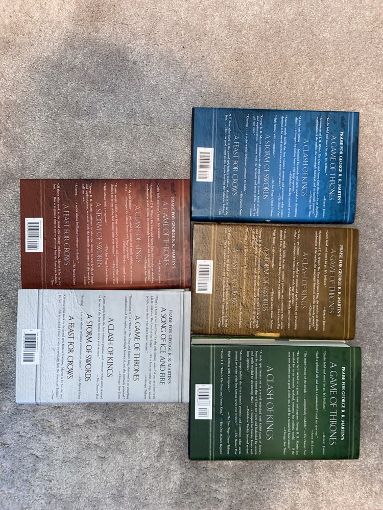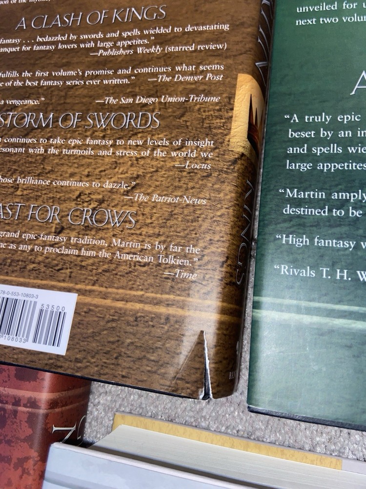 This is a complete set that has minimal wear. There is a tear on the sleeve of the clash of kings. Everything else is practically new