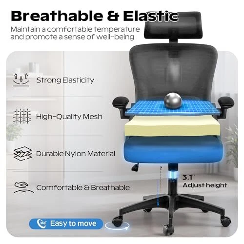 Return Policy Fast Delivery Trusted seller Ergonomic Office Chair, Home Office Desk Chair with Headrest, High Back Mesh Chair with Flip-up Armrests, Comfy Desk Chair with Lumbar Support, Rolling Swivel Task Computer Chair for Home Office Product Description [Ergonomic Office Chair]Designed with ergonomics, the mesh office chair is crafted to support the spine's natural curvature and encourage good posture, helping to alleviate back pain during extended periods of sitting. Its adjustable backrest tilt and lumbar support, cater to a wide range of user sizes and preferences, ensuring comfort throughout the day; [Breathable Mesh Back] Designed with a high-quality breathable mesh material, the home office desk chair promoting excellent air circulation to keep you cool and comfortable even during long hours' sitting. The mesh back also adds a modern aesthetic to the chair, aligning with the dynamic nature of workspaces; [Adjustable Headrest and Lumbar Support] Featured by a practical headrest that can be adjusted to different heights and angles, providing support for head and neck, reducing strain during long work hours. The adjustable lumbar support offer the right support, alleviating lower back pain associated with prolonged sitting; [Flip-up Armrest] The ergonomic mesh office chair boast armrests that can be flipped up and out of the way when not needed, providing flexibility and saving space. Ensuring that your arms are well-supported. Multiple adjustment features allow you to personalize your sitting posture; [Durability and Maintenance] Despite its comfortable and breathable design, the ergonomic office chair with adjustable lumbar support is built to last with a sturdy frame and high-quality materials. Wood layer is made of FSC-certified wood. SGS certified level 3 cylinder and sturdy metal base make the executive office chair an idea choice. Shipping Returns Payment Shipping Shipping is FREE to all addresses other than APO/PO boxes in the lower 48 states. All our stock ships from US-based warehouses. Shipped via USPS or UPS (depending on location and package weight) Unless stated otherwise, all orders will ship within 24-72 hours of your payment being processed. Check our feedback to see the great reviews of FAST shipping we offer. Returns Seller does not accept returns Payment We currently accept payment via eBay managed payments only. Once payment is cleared, we will dispatch your shipment within 1-3 business days. Please refer to the "Shipping" tab for more information regarding shipping speed to your destination.