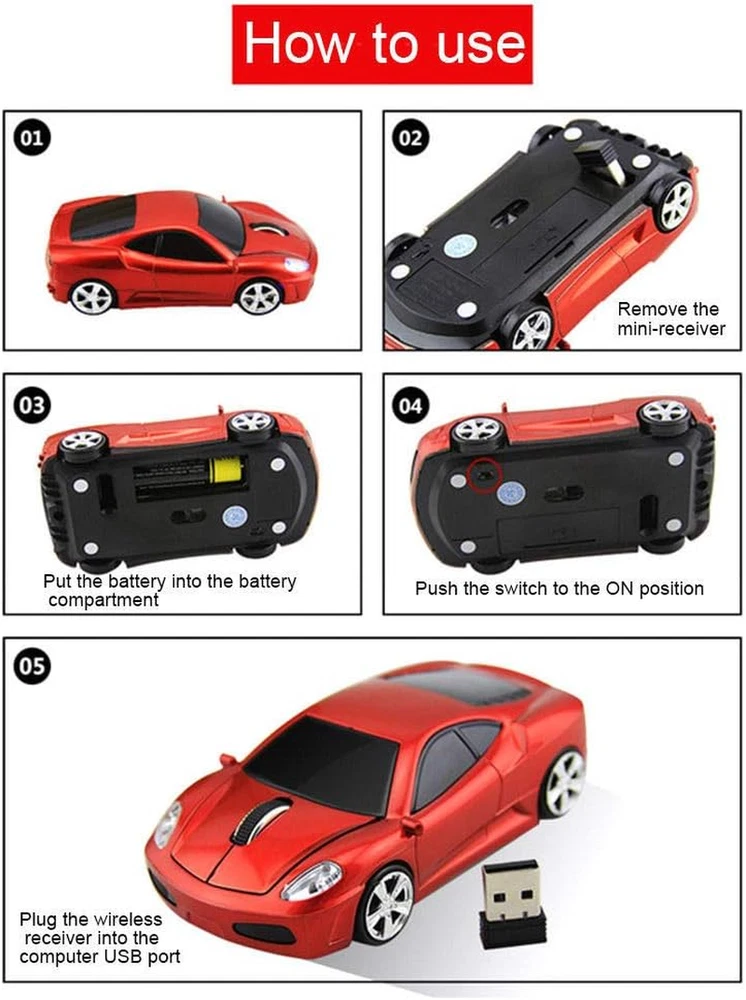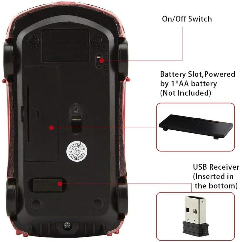 Store New Arrivals Add to Favorite View Feedback Contact Sleep Sport Car Shaped Wireless Computer Mouse Ergonomic Gaming Optical Mouse Description Style Modern Are Batteries Included No Power Source Battery Powered Compatible Devices Notebook, Personal Computer Theme car-themed Movement Detection Technology Optical Mouse Maximum Sensitivity 1.6E+3 Dots per Inch Button Quantity 3 Brand Name Jinfili Brand Jinfili Material Plastic Number of Batteries 1 AA batteries required. Finish Type Glossy Hand Orientation Ambidextrous Manufacturer Jinfili Hardware Platform PC, Linux, Mac Battery Average Life 2 months Connectivity Technology 2.4G Movement Detection Optical Operating System Windows XP, Windows 8, Windows 7, Mac, Windows 10 Special Features Wireless Special Feature Wireless Item Dimensions L x W 4.5"L x 2.9"W Item Weight 0.18 Pounds Color FLL_Red Range 10.0 meters Are Batteries Required Yes Recommended Uses For Product Laptop Included Components USB Receiver Wireless car mouse fashion sport car shaped design with headlights,Super cool gaming mouse for laptop computer,good choice for using or as gifts for kids,girls,women and men Auto sleep mode:Plug and Play, no any drive is needed;Energy-saving,if mouse is not used for short time, it will turn to power saving mode to save energy Powered by 1 AA battery (the battery isn't included). Mini receiver, 2.4GHz optical wireless transmission, operation distance is up to 10 meters. Support most operating system,Windows 98 / ME / NT / 2000 / XP / Vista / Win 7 / Linux or Mac OS and more Product Description Cool sport car shaped wireless mouse for laptop computer notebook,eyecatching ergonomic design,good choice as gifts for kids,teens,students, teachers,girls,women and men. Don't worry if you encounter the mouse doesn't work when you use it for the first time Frist,pull the receiver out and plug it in Second,turn off and on the power If the mouse still not work,please send message to us,we will solve it for you Note:The USB Receiver is in the bottom of mouse(See the description) Feature: Plug and Play,No any drive High-performance chip, stable performance 5 million key times, life ahead of other products 33ft launch distance, 2.4 GHz wireless transmission Car exterior design, the trend of appearance, high-end configuration Light weight enough to take it everywhere, a good choice for home use and on the go Compatible with Windows 2000, Windows XP, Windows 7, Windows 10,Windows Vista, Windows 98, Mac OS, Windows ME, Windows 8 Specifications: Interface: USB 2.0/3.0 Tracking Method:Optical Rated working Voltage:3.0V Optical Resolution: 1600DPI Rated working Current: 25mA Switch Life:5 Million cycles Button: 2 Buttons + 1 Scroll Wheel Battery:1xAA Battery(Not included) Wireless Operate Distance:Up to 33 feet Wireless Transmission Frequency: 2.4 G Package Included: 1 x Wireless mouse 1 x USB receiver (placed in the bottom of the mouse) 1 x Using instruction How to use 1.The USB receiver is placed in the bottom of the mouse; Take out the USB receiver, then plug the USB into computer; Prepare 1* AA battery when you first use it(not included); The mouse and receiver will connect automatically in a few seconds. 2.If it can not go to paring mode,the mouse need to pair with the USB again: Turn off the Switch,pull down the USB receiver from computer, then plug in the USB and turn on the mouse switch again, get the mouse colse distance with the USB receiver. If not still work,Please try to put the usb receiver to other USB port of pc ABOUT US We offer the best prices around on high quality products. Our E-store includes media such as books, movies, music and games while offering electronics, toys, sporting apparel, clothing, tools, general home, garden items and more. SHIPPING We are always working hard to ensure your package arrives as soon as possible. Please understand that some factors like weather, high postal traffic, and the performance of shipping companies are outside of our control. We offer free shipping to the lower 48 states and ship within 2 business days of payment, usually sooner. We do not accept P.O. Boxes. Please provide a physical address. RETURNS We offer a 30-Day Return Policy on items which you are not completely satisfied with. You have the option for a full-refund or an exchange of the item. No returns are available on items shipped outside of the USA. PAYMENT We accept PayPal. CONTACT US This page content is yet to come Please ad us to your favorite seller and visit again later Thank You CUSTOMER SATISFACTION We try our very best to make sure every customer is completely satisfied. If there's a problem, message us! We're happy to help.