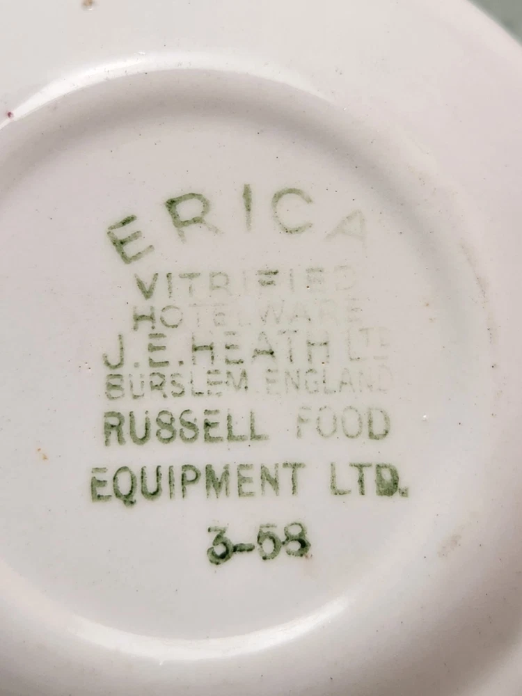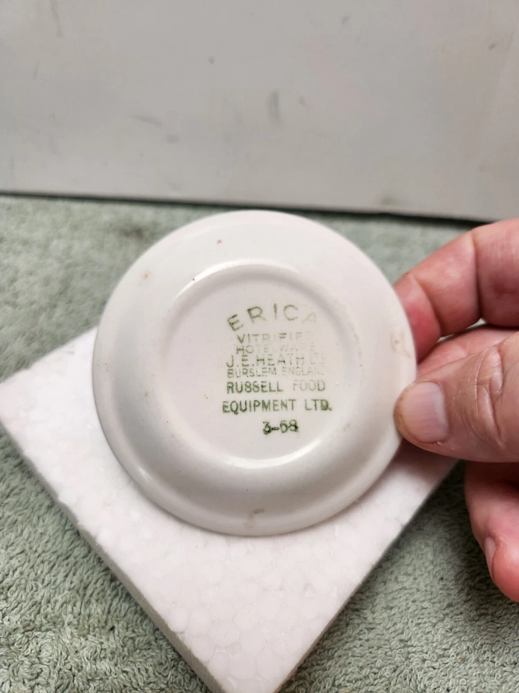 Erica Hotel Ware Butter Pat, Tea Bag Holder J E Heath Burslem England Russell. INVENTORY: 38