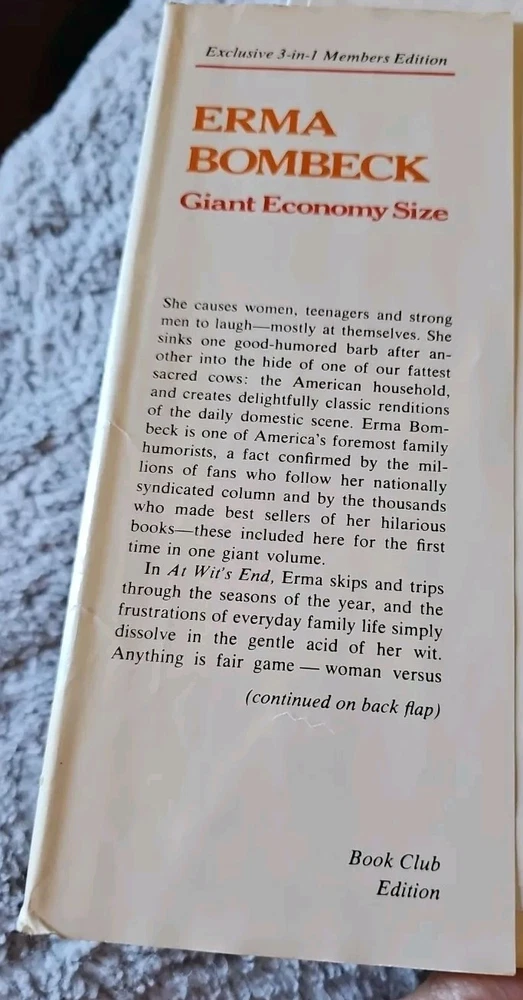 This vintage book by Erma Bombeck titled "Giant Economy Size" is a must-have for any book collector or fan of classic humor. With its humorous illustrations and witty narrative, this nonfiction book is sure to bring a smile to anyone's face. Published by Nelson Doubleday in the 1970s, this book is a great addition to any collection. The book measures 3 inches in width and features an illustrated cover. It is written in English and is perfect for anyone who appreciates vintage humor. This item is not ex libris or inscribed, and was printed in the United States. Don't miss out on the chance to own this rare gem!