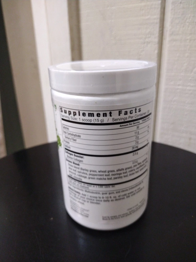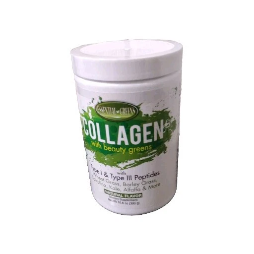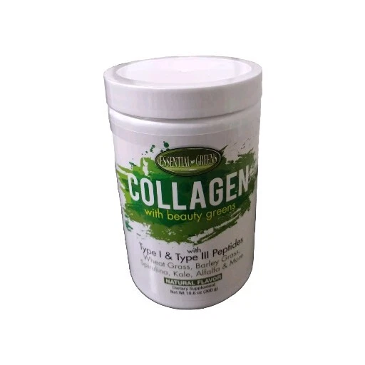 Number of Pills:0Expiration Date:05/2024Brand:Essential GreensAge Group:AdultCountry/Region of Manufacture:United StatesFormulation:PowderType of Diet:Vegan/Keto/Weight Management/Cleanse/DetoxVolume:Two 10.6 oz containersActive Ingredients:Spirulina, Type I Type III Peptides, Wheat Grass, Barley, Kale, Alfalfa, Green Pea Fiber, Spinach & Moregtin13:035046104207Features:All Natural, Gluten FreeFlavor:Natural FlavorIngredients:Collagen/Wheatgrass/Spirulina/Barley/SpinachType:Collagen with SuperGreensItem Weight:10.6 ozMain Purpose:Anti-Aging, Stress, Hormonal ChangesDepartment:UnisexWhen to Take:AnytimeCustom Bundle:NoDosage:One scoop 1-2 times DailyUPC:035046104207