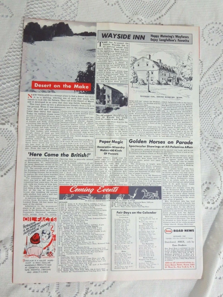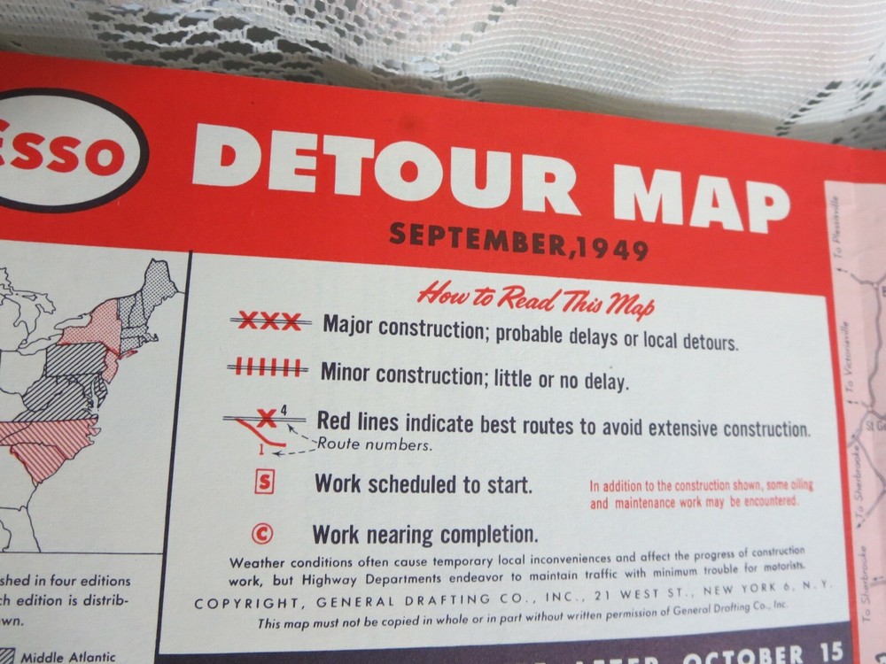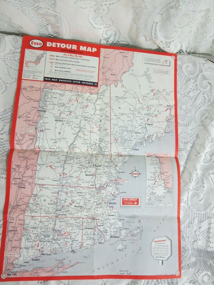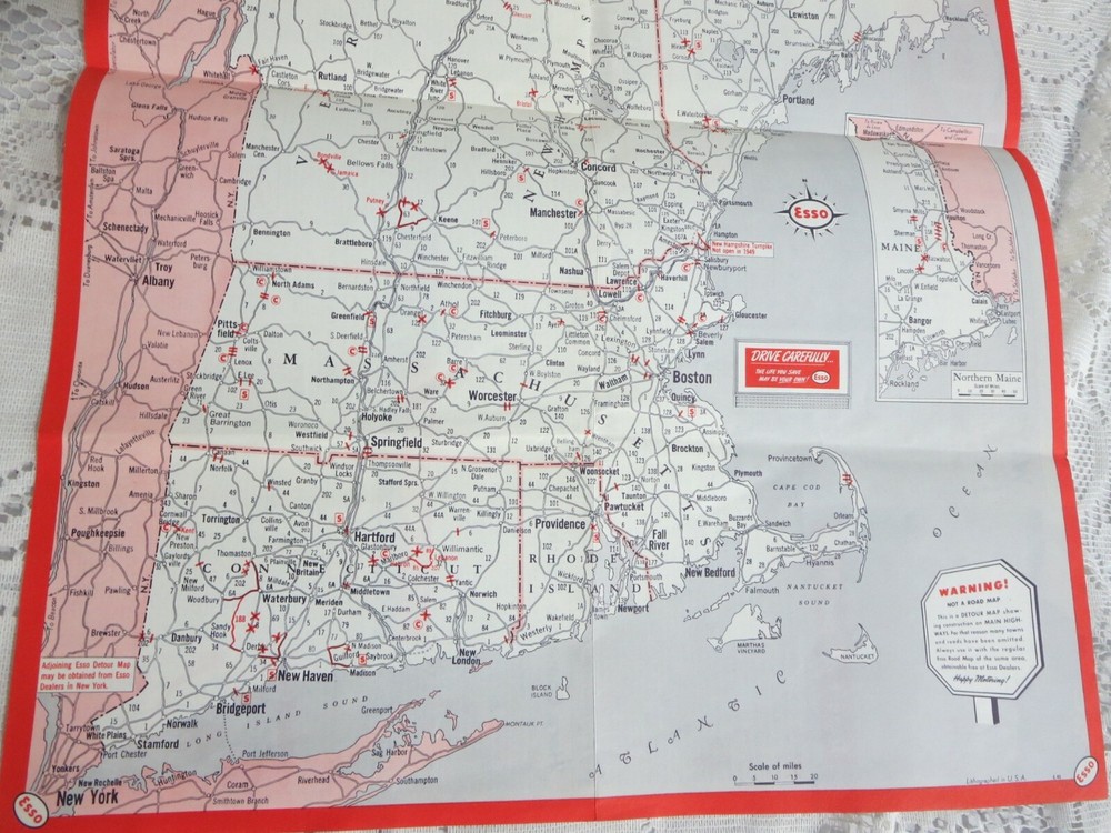 Esso Standard Oil Co Road News & Detour Map Sept 1949 Northeast US 10 1/4" x 15 1/4" Great Condition. Most of the items I sell are purchased at shops/garage sales/estate sales,etc. Unless stated new, they are pre-owned items. I cannot guarantee items I sell are from smoke/pet free homes originally. I can only say that once I have them, they are in a non smoking environment. So please keep that in mind when bidding/purchasing. I do combine shipping based on the weight of the combined items. I do accept returns and will give a full refund provided item returns in the condition it left. Buyer pays return shipping. Feel free to check out my store for more great items. Thanks for looking! Jeanie