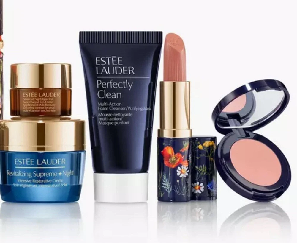 Estee Lauder 7Pcs serum & Cream,Revitalizing Supreme Night, Foam,Lipstick.