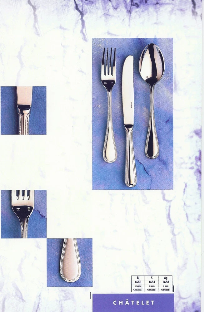 ETERNUM - BELGIUM One brand new, Eternum Chàtelet 18/10 stainless steel teaspoon, measuring 5.3 inches. This is the exact teaspoon included in with the Eternum Chàtelet 5 piece place set sold at Williams Sonoma. We have the the entire collection of the Chàtelet flatware pattern in stock. Please let us know if you need help matching up an item for your pattern. 100% Satisfaction Guarantee - If for any reason you are not satisficed with your purchase, any unused item returned with along with undamaged original packaging, will be refunded 100% FREE SHIPPING