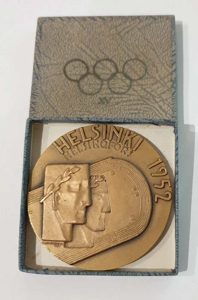 An Original Exceptional quality XV Summer Olympic Games HELSINKI 1952 PARTICIPANT medal with original box. Size : 5 3 mm. Very fine condition . See scan for details. For security I ship by registered Air mail.