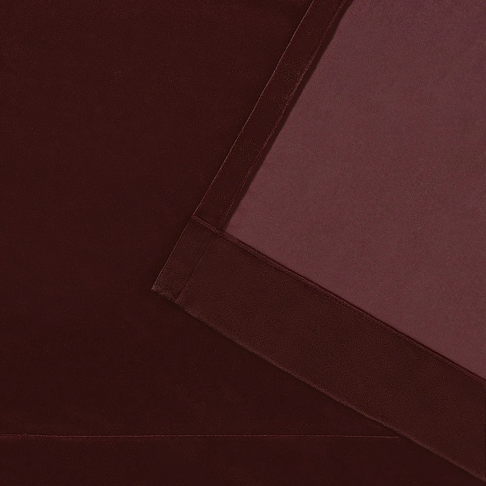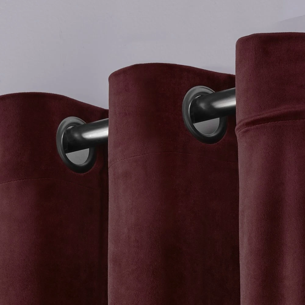 Product Description The Velvet Heavyweight Light Filtering Grommet Top Window Curtain Panel Pair in burgundy brings a rich, luxurious look and feel to any room and offers a simple way to add color and texture to your decor. These plush velvet panels have a light-filtering opacity and filter light beautifully into your space while also providing privacy. Hang from the silver grommets using your favorite curtain rod up to 1.25" in diameter. For proper look and fullness, the curtains should measure 2-3 times the width of your window. From the Manufacturer Amalgamated Textiles USA, Inc, is North America’s leading supplier of home textiles and ready-made drapery by delivering high fashion designs, patterns, varying textures, and colors in an “affordable luxury” quality that today’s consumers expect. From classic solids to today’s top fashion trends, you are sure to find window panels to fit any look, mood, or style to complete your home décor project. We offer an array of fabric constructions as well, including jacquards, linens, burlap, sheers, thermal/blackout, silk and faux silks, polyester and poly blends, and cotton and cotton blends. These constructions are offered in varying designs and colors including solids, prints, textures, thickness, lengths, widths, and burnouts. Like millions of customers already have, let our window coverings be the anchor of each room in your home! Velvet drapes are offered in todays trend colors, creating a rich and luxurious look Includes: (2) curtain panels, each measuring: 54"W x 108"L 8 matte silver grommets per panel; inside diameter for curtain rod measures 1-5/8" - panel sewn with 4" heading; 3" bottom hem Recommend ordering 2 to 3 times rod width for proper look and fullness Care instructions: Spot clean and/or hand wash window treatment curtains. Use iron on low heat to straighten and remove creases/wrinkles from packaging.