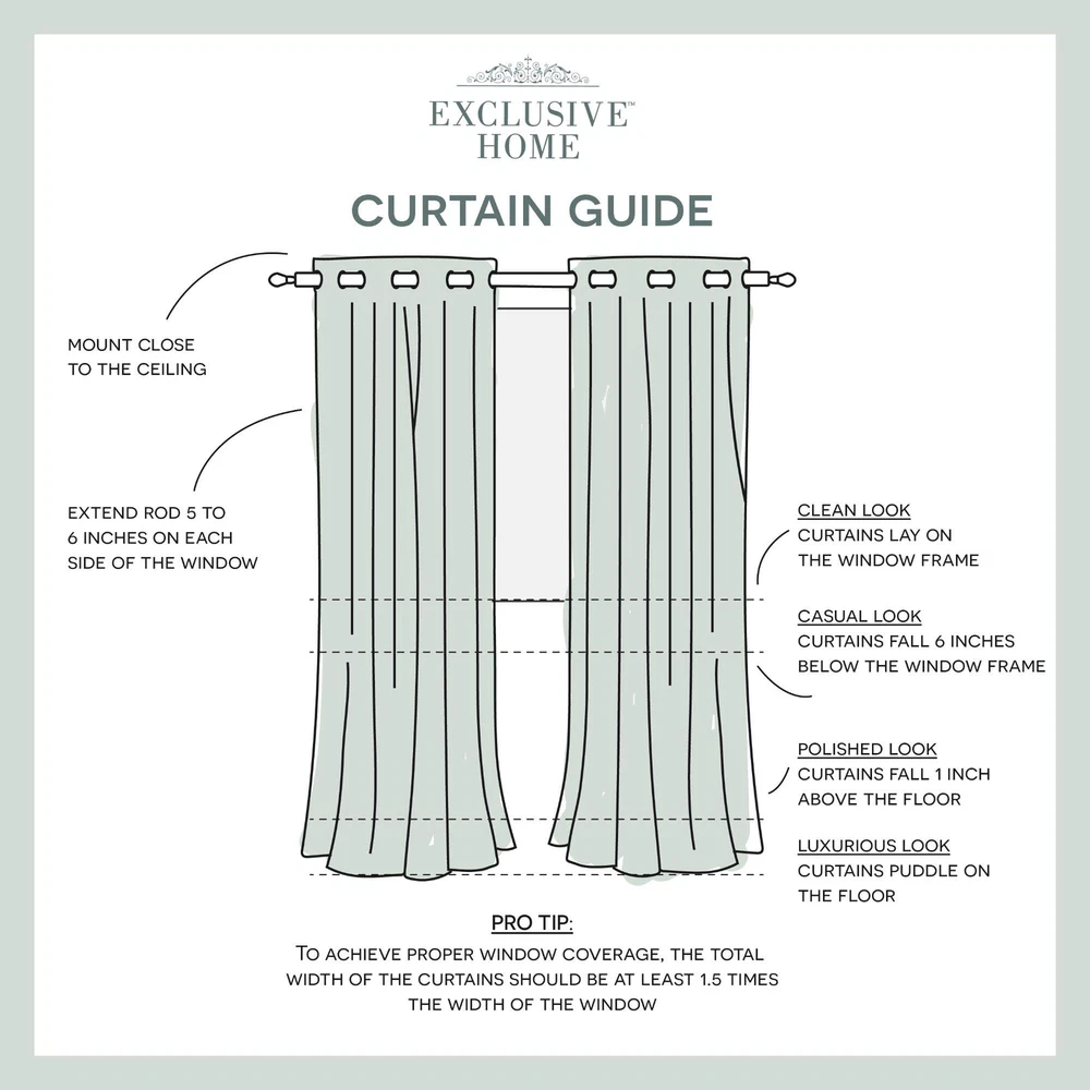 Product Description The Velvet Heavyweight Light Filtering Grommet Top Window Curtain Panels in winter white bring a rich, luxurious look and feel to any room and offer a simple way to add color and texture to your decor. These plush velvet panels have a light-filtering opacity and filter light beautifully into your space while also providing privacy. Hang from the silver grommets using your favorite curtain rod up to 1.25" in diameter. For proper look and fullness, the curtains should measure 2-3 times the width of your window. From the Manufacturer Amalgamated Textiles USA, Inc, is North America’s leading supplier of home textiles and ready-made drapery by delivering high fashion designs, patterns, varying textures, and colors in an “affordable luxury” quality that today’s consumers expect. From classic solids to today’s top fashion trends, you are sure to find window panels to fit any look, mood, or style to complete your home décor project. We offer an array of fabric constructions as well, including jacquards, linens, burlap, sheers, thermal/blackout, silk and faux silks, polyester and poly blends, and cotton and cotton blends. These constructions are offered in varying designs and colors including solids, prints, textures, thickness, lengths, widths, and burnouts. Like millions of customers already have, let our window coverings be the anchor of each room in your home! LUXURIOUS: The Exclusive Home Velvet Heavyweight Grommet Top Curtains offer a rich, luxurious look for your windows. The light-filtering fabric filters light beautifully into your space while also adding color and texture to your decor. LIGHT FILTERING OPACITY: light filtering opacity provides privacy to your room while still allowing natural light to shine through. It's perfect for diffusing light beautifully into your space. GROMMET TOP FOR HANGING: These curtain panels feature eight (8) matte silver grommets per curtain panel and fits a curtain rod up to 1.25" in diameter. Each panel is sewn with a 3.5" heading, 1" side hem, and 3" bottom hem. SET OF CURTAIN PANELS: Includes (2) curtain panels, each measuring 54"W x 84"L. PLUSH VELVET: These well-crafted, plush velvet panels enhance any space in your home with vivid color and lavish texture, Hang them in your living room, dining room, bedroom, office, hallway, or entryway.