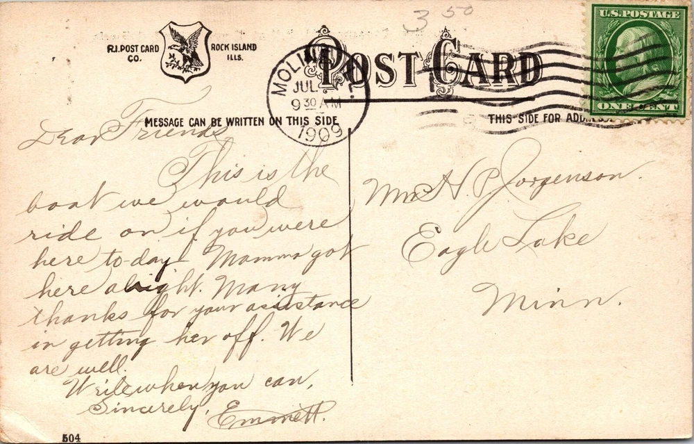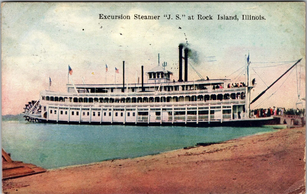 Excursion Steamer J S At Rock Island Illinois c1909 Vintage Souvenir Postcard