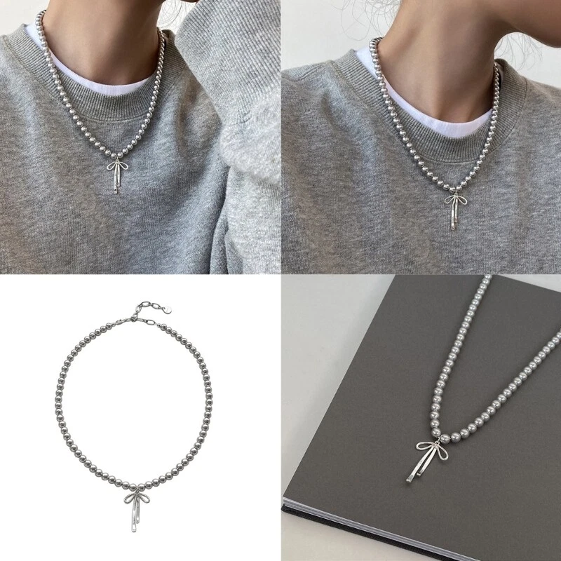 Exquisite Pearls Bowknot Necklace Neckchain Charm for Women's Jewelry Collection Features: Elevate your with this gray pearls beaded bowknot pendant necklace, crafted from high for a fashionable and versatile accessory. The bowknot pendant brings a playful and feminine touch to any attire, making it suitable for both casual and formal occasions. Designed for women who appreciate beauty and want to showcase their unique of fashion. Wear it daily as a addition to your wardrobe or layer it with other necklaces for a more personalized and fashionable look. This necklace makes a thoughtful birthdays, anniversaries, or any special occasion, allowing the recipient to feel confident and beautiful. Specifications: Size:Approx.45cm/17.71inches Package Includes: 1Piece Gray Pearls Bowknot Pendant Necklace note: Please allow 1-2cm error due to manual measurement. Please make sure you do not mind before you bid. Due to the difference between different monitors, the picture may not reflect the actual color of the item. Thank you!