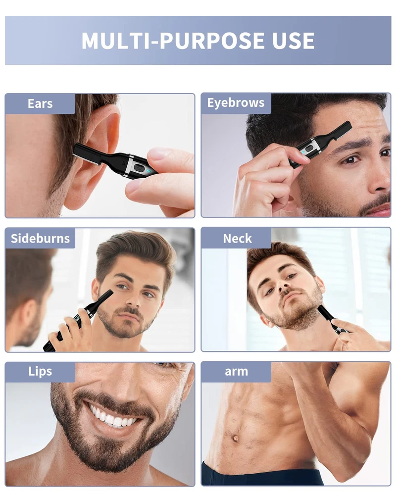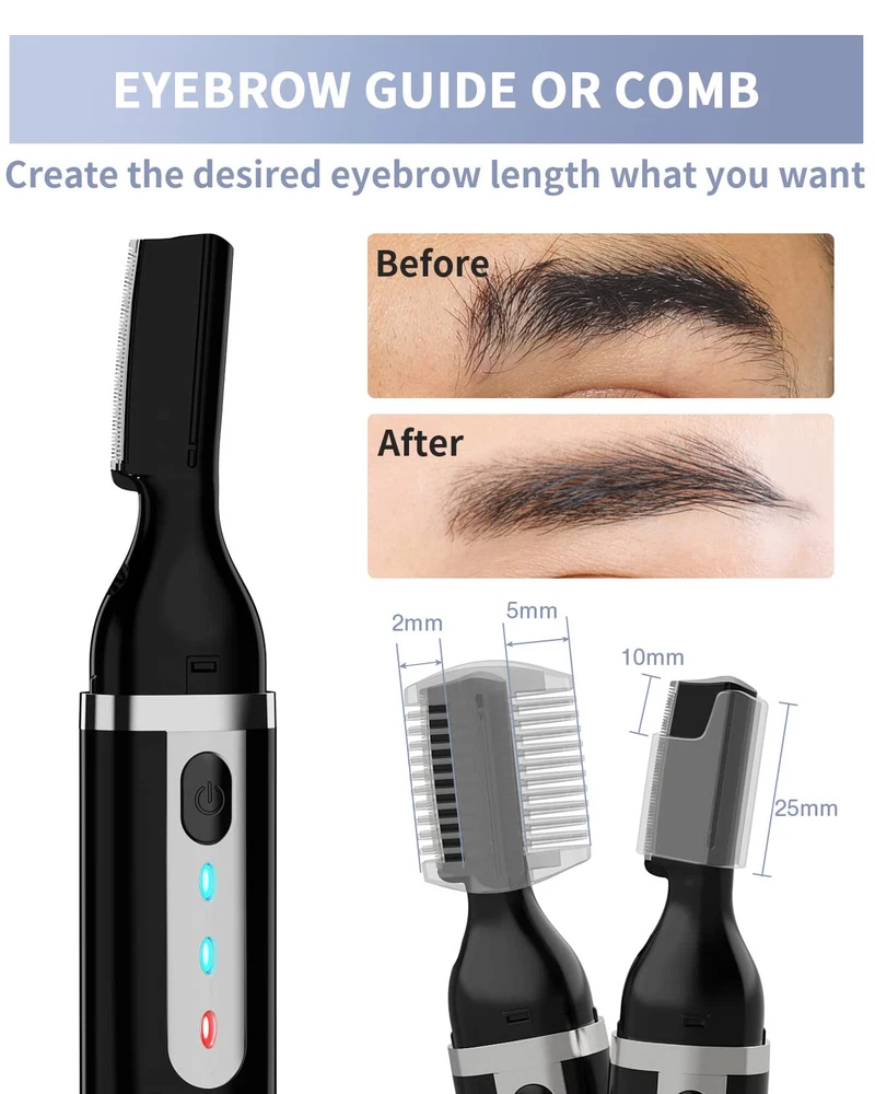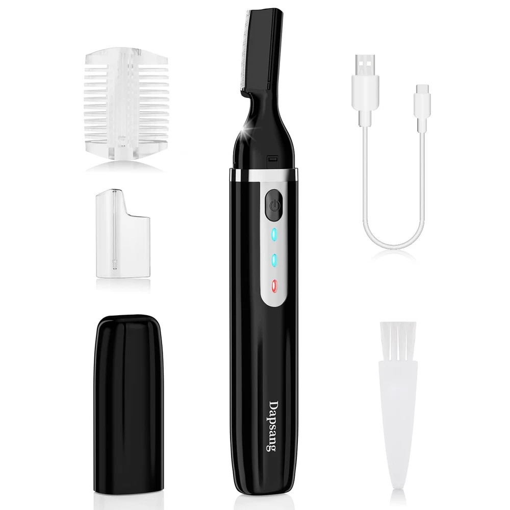 【Skin-Friendly and Painless Personal Trimmers】Our eyebrow razor trimmer is hypoallergenic and very gentle on your skin, without pulling or damaging pores. The dermaplaning tool has excellent sharpness and provides you with a painless and safe shaving experience. Get the best care for your face. Our professional eyebrow razor works excellent and is ideal for both men and women 【Multifunctional Eyebrow Trimmer Kit】This precision eyebrow trimmer is ideal for women and men to trim facial hair details, not only for trimming eyebrows but also for ears, sideburns, lips, mustache, underarms, arms and legs. Our facial hair trimmer comes with a double head grooming comb so you can trim and shape your brows to the length you want and prevent excessive trimming to show your pretty style 【Easy and Convenient Way to Remove Hair】Shaping brows and trimming facial hair is no longer time-consuming with our eyebrow trimmer. Our electric eyebrow trimmer with LED light, you can see every detail clearly, this electric eyebrow razor provides you with precise grooming, making your facial grooming more efficient. You can also shave your baby's hair with confidence, giving your baby a safer, efficient and comfortable haircut 【Easy Cleaning and USB Rechargeable Eyebrow Trimmer】This eyebrow razor kit comes with a charging cable, so you don't need to change batteries frequently. You can use the eyebrow shaver trimmer anytime, anywhere to create beautiful eyebrows and smooth skin. Plus, you can easily remove the head and rinse with water, blade pops off quickly for more thorough cleaning with included brush 【Portable Eyebrow Shaver Pen for a Perfect Gift】This mini eyebrow razor is very lightweight and easy to carry around, only the size of a pen, you can easily take the small eyebrow razor with you on the go, travel, daily life or work. Get this surprise gift for your friends and family, they will love and be amazing