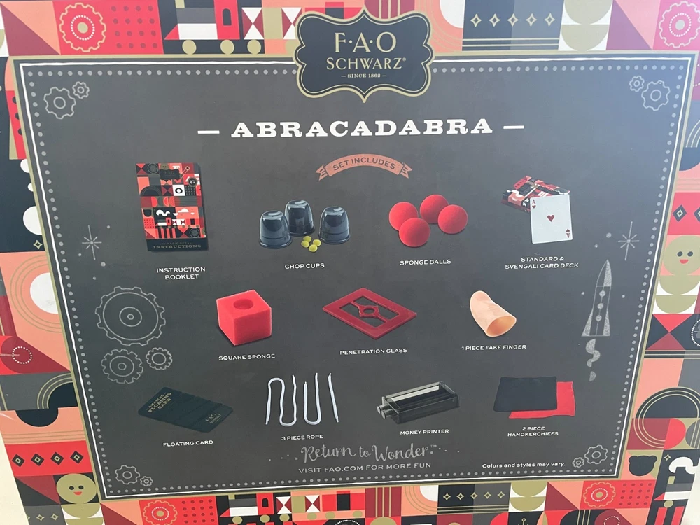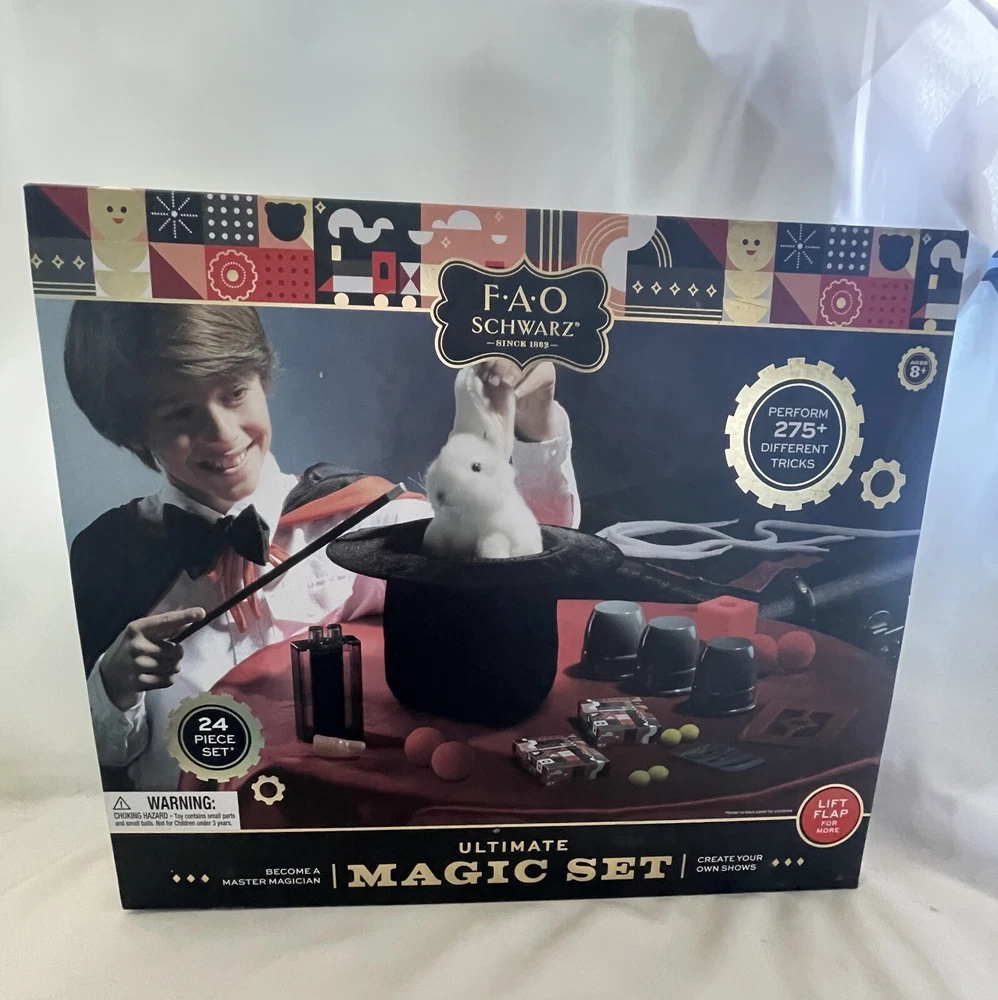 F.A.O SCHWARZ ABRACADABRA MAGIC TRICK SET 275+ Magic Tricks age 8+ New Excellent Condition - Never Played With. Purchased at Macy's and Original Price Was $59.99 With Tax. This will be shipped Priority Mail in Wrapped Brown Paper. Please Feel Free to Ask Any Question. Thanks for Looking, Margie