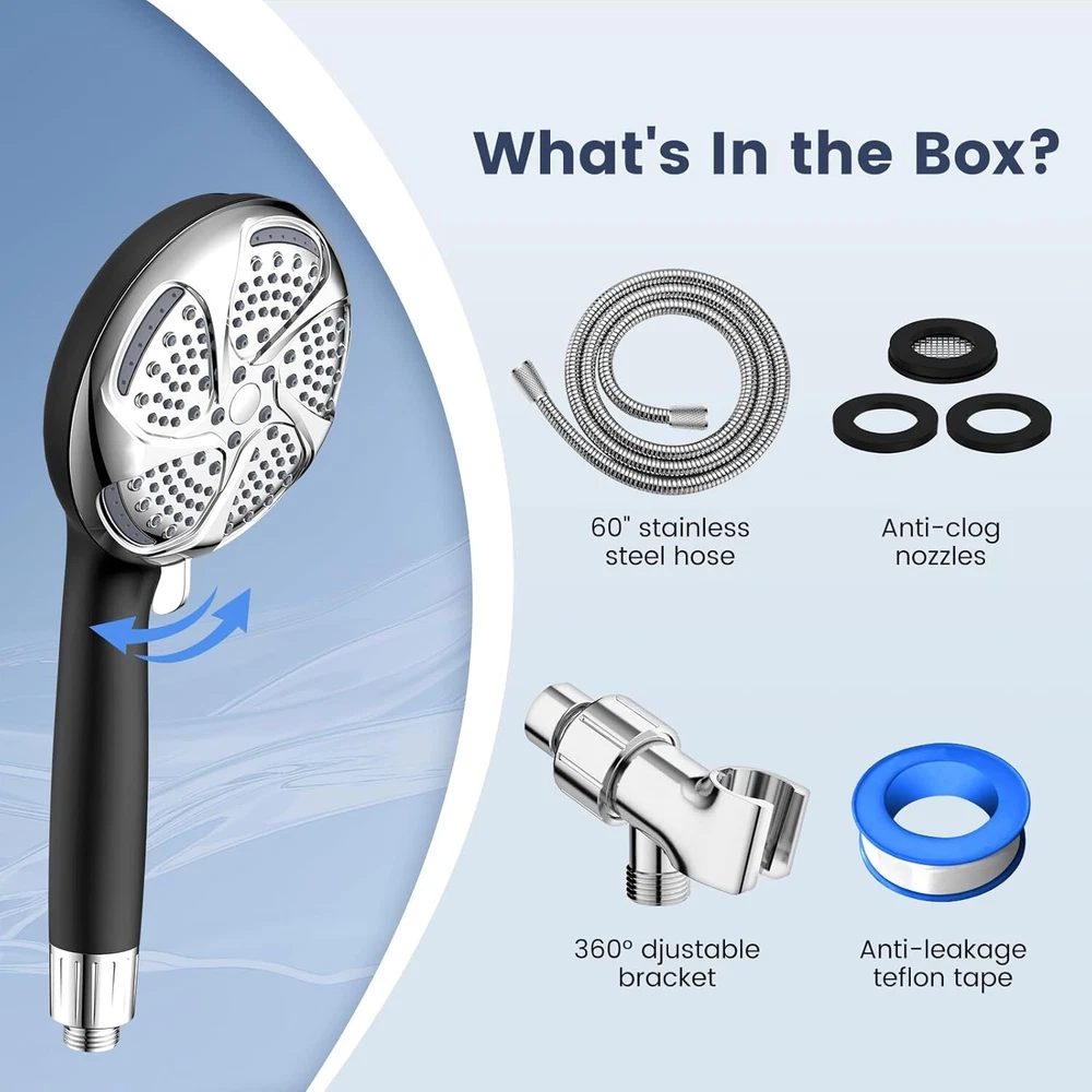 FEELSO Filtered Shower Head with Handheld, High Pressure Black & Chrome Description Features: 【What You Should Know About Bath Water】 Are you troubled by dry allergies skin, fragile tangled hair, or unpleasant odors from your bath water? As you can know, tap water contains residual chlorine, rust, heavy metals(lead, mercury, nickel, chromium) and other impurities. 80% of the US has hard water and about 70% of all community water systems in the US used chlorine. Research shows that our bodies absorb water not only through drinking but also significantly through the skin—over 65% during washing and bathing. If we use bath water contain residual chlorine for a long period of time, we may face various skin&hair problems. That’s why we need to filter out bath water. 【Upgraded Shower Filter System & Visible Filtration Effect】 Now you can find the perfect solution at FEELSO. This innovative shower head filter system can help improve those skin or hair issues. Equipped with a powerful filtration system, including premium KDF-55, advanced calcium sulfite, activated carbon, vitamin C, alkaline balls, clay ball, negative ion balls and more, it effectively removes up to 99.9% of chlorine, fluoride, heavy metals, and other harmful substances that can lead to dry skin, frizzy hair, color changes or other skin&hair problems. You can find the perfect solution in skincare and haircare. Please find the CORRECT REPLACEMENT FILTERS in our store: B0DHZL69FJ 【High Pressure & Water Saving】 FEELSO upgraded filtered handheld shower head is designed with a unique internal structure design, which can bring you a full-coverage rain experience even at low water flow or low water pressure, completely wash away soap, shampoo, and conditioner without irritating skin. Not only that, the high output rain water flow allows you to rinse your body faster, saving water and shower time. You will get rid of all the troubles of traditional showers and enjoy a relaxed shower experience. 【6 Shower Spray Modes + Power Wash Modes】 Our high pressure handheld filtered shower head has 7 switchable settings (Rain, Massage, Mist, Rain & Massage, Rain & Mist, Water Saving and Power Wash modes). It meets various needs without complex settings for ease of use. Besides, do you tired of that disgusting soap scum and dried hair left behind after each shower? Now you can clean it all in seconds from up to 5ft away, without setting a foot in your shower room. Simply press the button on the back of the shower head to switch to power wash mode, quickly rinse off large areas and blast away the stubborn grime! Cleaning the shower room becomes quick and easy! 【Anti-clog Nozzles & 100% Watertight Hose】 Equipped with upgraded high quality self-clean and anti-clog nozzles, it prevents lime and hard water buildup, ensuring consistent water flow for a refreshing and relaxing shower. The inner core of shower hose is made of solid brass. The structure is tight and not easy to break. It is rigorously tested to ensure quality performance. You never need to worry about leaking on the hose or shower head, which offer you a great shower experience. Product Details: Brand: FEELSO Style: Art Deco Shape: Round Material: Acrylonitrile Butadiene Styrene Finish Type: Polished Setting Type: PowerSpray Installation Type: Wall Mounted Color: Black & Chrome Product Dimensions: 11.6"L x 4.9"W Hose Length: 60 Inches Number of settings: 7 Special Feature: Detachable Manufacturer: FEELSO Part Number: 72210BC Item Weight: 1.77 pounds Item model number: 72210BC Finish: Polished Special Features: Detachable Included Components: 1*Shower Head(built-in filter), 1*Shower Holder, 1*Stainless Steel Hose, 1*Teflon Tape, 1*Instructions Batteries Included?: No Batteries Required?: No Brand: FEELSO Style: Art Deco Shape: Round Material: Acrylonitrile Butadiene Styrene Finish Type: Polished Handling We will ship all orders within 3 business day of payment. Delivery We take pride in offering fast and reliable delivery for your orders! We are committed to getting your products to you as quickly as possible. Generally, we would like to inform you that all orders will be delivered to you within 1-3 business days after processing.However, in some cases, delivery times may vary depending on the buyer's location. Especially in remote or rural areas, the expected delivery time may be extended. In such situations, we do our best to ensure that your order reaches you as quickly as possible.If there are any delays, we will be happy to contact you to explain the situation. Our goal is to enhance your satisfaction with our fast delivery times. We work diligently to ensure that your order arrives safely.Trust us and enjoy our speedy delivery! Return Policy All items qualify for returns within 30 days of receipt. Buyer is responsible for return shipping on any item that is not damaged. Feedback We take our reputation seriously, we buy and sell online, so we understand the value of trust. If you are unsatisfied with your order, please contact us and we will work with you to resolve it to your satisfaction.