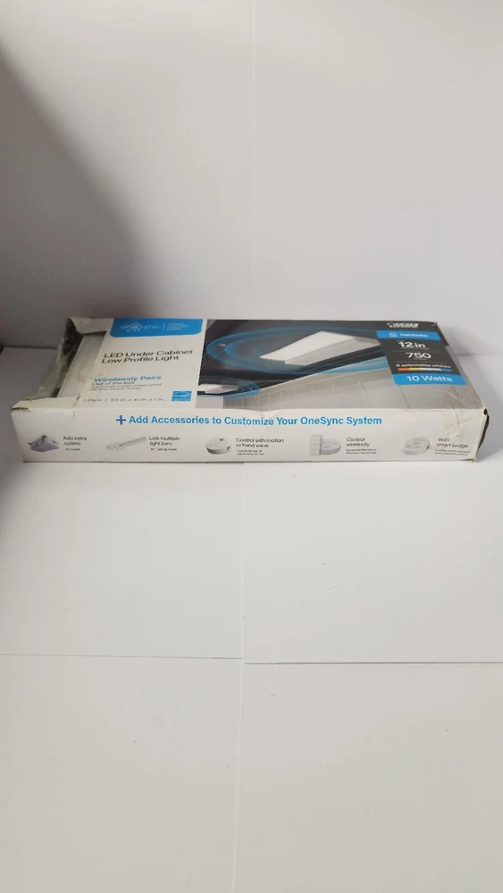 OPEN BOX ( LIGHT ONLY ) Brighten up your under cabinet with this Feit Electric Onesync LED light. The 9.5" LENGTH light is designed for easy installation and features a low profile design that fits seamlessly under your cabinet. The white color of the light adds a modern touch to any kitchen or workspace.