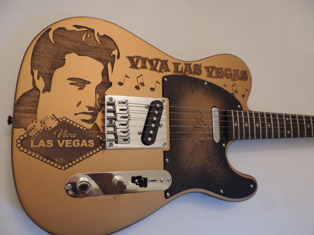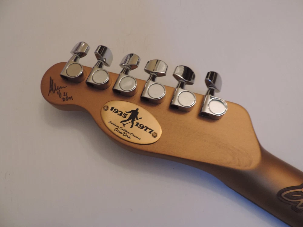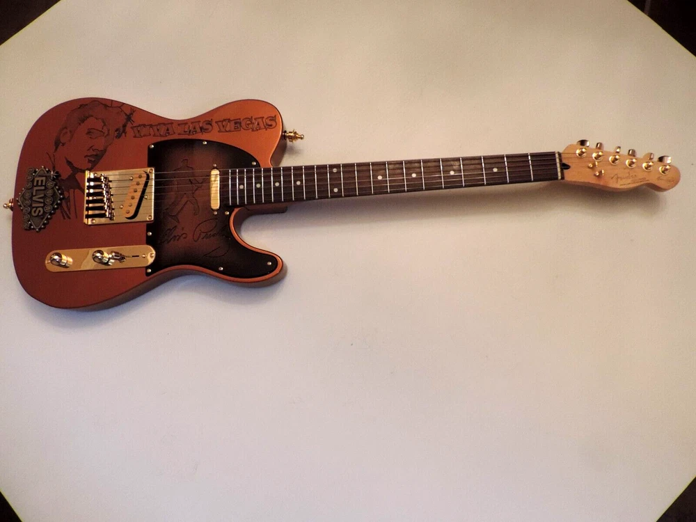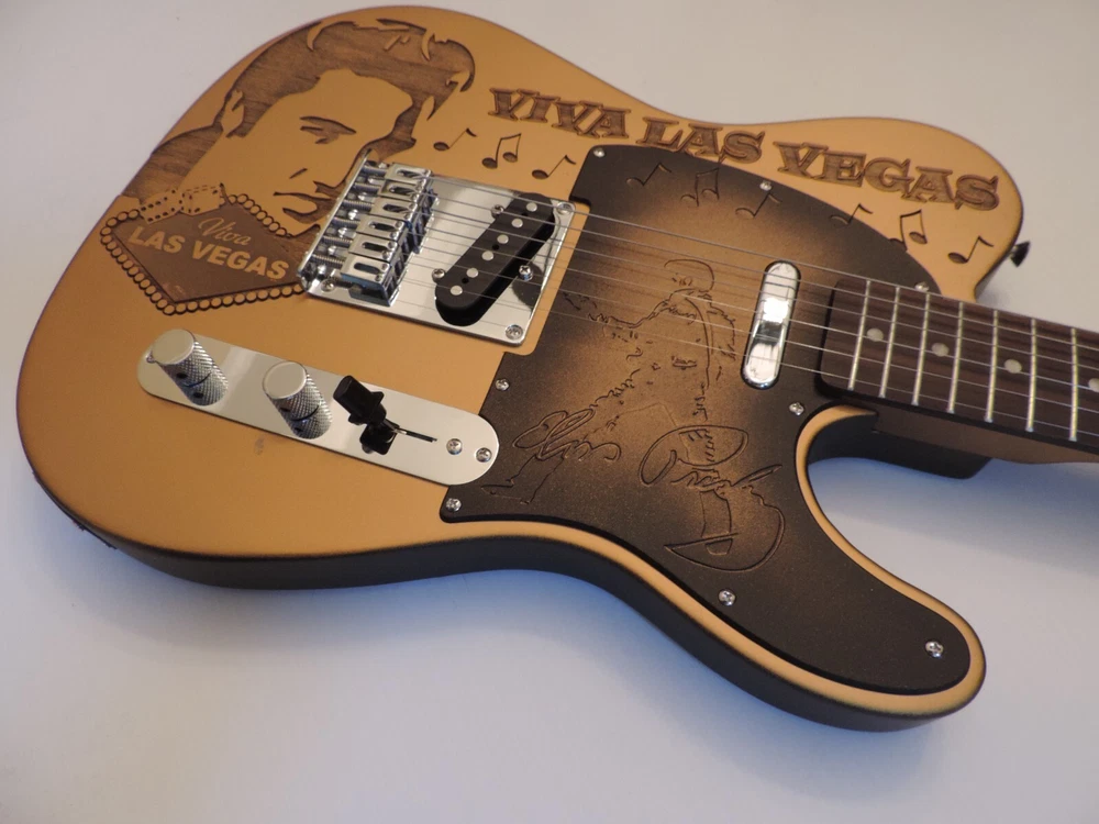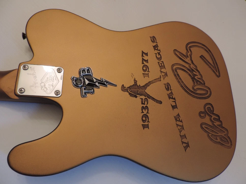 Please note : Guitar ships within 20 Business Days. Custom Fender Telecaster Elvis Presley Viva Las Vegas Tribute Customized Tele. Customized by DelDuca Custom Classics . Custom 3D Hand Engraved in the Wood, No Stickers or Decals . Hand Engraved Pickguard. Custom Bronze Gold Finish Pre owned in very good condition - No Fret Wear. Includes Padded Bag. Please take The time To See All Pictures As they Are Part Of The Description Sold as Is and As Shown. No returns. Paypal. PLEASE NOTE , GUITAR SHIPS WITHIN 20 BUSINESS DAYS Worldwide Shipping.