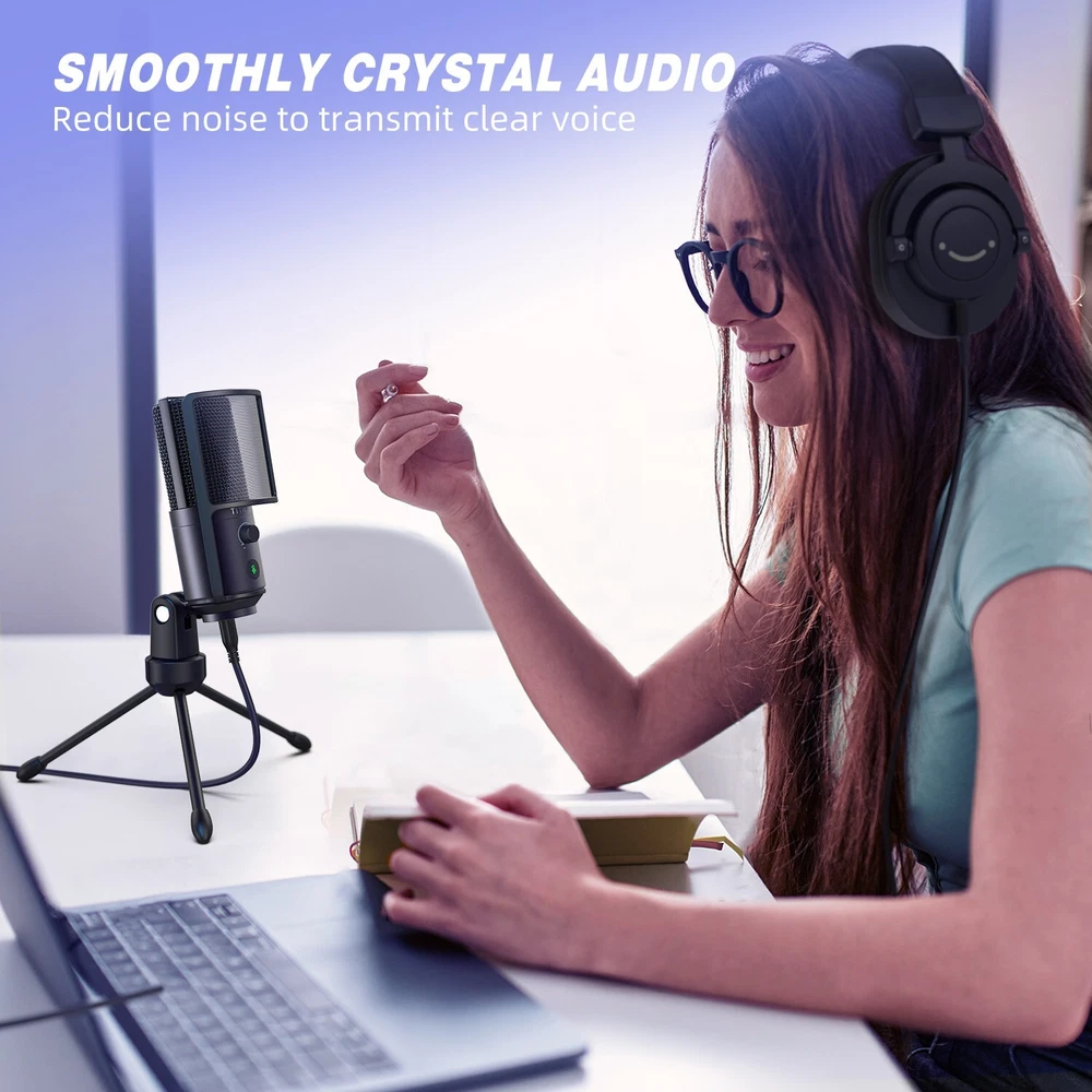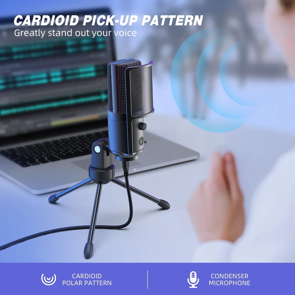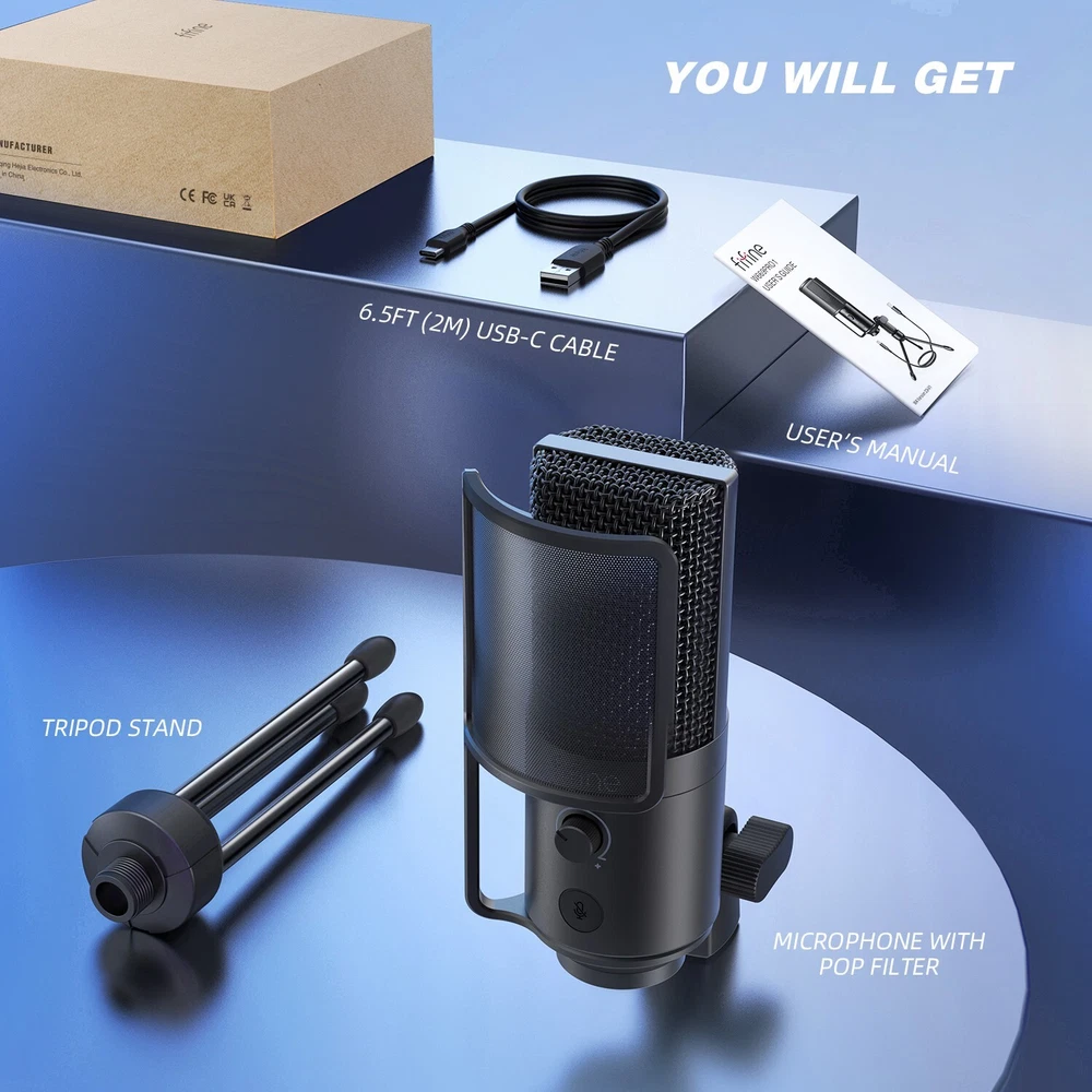 Product description : The FIFINE E669PRO1 is a cardioid pattern condenser recording USB microphone, with stable tripod stand, used on the desktop, anti-slip performance is good. It is convenient when you are doing voice overs or livestreams on YouTube. USB output plug and play for daily recording meeting work. This USB podcast microphone features a gain knob, that freely adjusts the microphone volume and sensitivity during the recording process to get a great sound. Clicking the mute button can quickly mute or unmute the condenser recording microphone, instead of pressing or operating the computer, to avoid emergency situations during live broadcasts or podcasts. The detachable pop filter enhances your recording session effectively reduces the plosive, pops, crackles, wind interference, breath sounds when recording vocals. It don't muffle the sound and are washable, it can provide clean recording quality. E669PRO1 mic offering smooth and extended frequency response and cardioid pattern, it is great at leaving background noise out of the recorded audio to improve your recording quality. Features: [Mic Function Keys] Function keys on the front of the mic saves more computer control. Soft-touch mute button helps you instantly mute the gaming microphone without audible noises when streaming or podcasting, giving you greater control and flexibility during recording sessions or gaming sessions. And the mute indicator makes it easy for you to check if it's muted or not. By moving the microphone gain knob left and right when Twitch or Discord, the volume of the microphone can be adjusted in real-time. Adjust the volume to what you need at the time but no need to yell or whisper. [Convenient USB Setup] Plug and play recording USB microphone for PC, with 6.5ft USB cable included for computer PC laptop, is connected directly to USB port for recording music, computer singing or podcast. The office microphone for computer is easy to use and install. USB-powered design, the condenser microphone for recording no need the 48v Phantom power supply, works well with Cortana, Discord, voice chat and voice recognition. The podcast microphone for Mac meets most of your daily recording needs. [Clear Sound Quality] Cardioid gaming microphone for PC captures your voice properly, producing clear smooth and crisp sound without static noise. Great gift for gamers/streamers/youtubers at isolating the sounds from the main source and separating them from any background noise. Mic removable pop filter help eliminate plosives like "b", "p" "t" and some of static noise emitted from the ambient areas like keyboards and game console buttons without altering the natural sound of the mic, can be used for singing, conference room, news interviews and other places that you need quality sound. [Durable Metal Design] Solid sturdy metal construction design, the computer microphone for meetings with stable tripod stand is convenient when you are doing voice overs or livestreams on Youtube. Durable material extends the service life of the voice-over microphone. Calibrate the desktop microphone with thumbscrew adjusting can offers you better recording angle. Built-in locking screw prevents the USB PC microphone from loose falling and ready to record or podcast at any time. [Compatible With Multiple Applications] For Discord OBS Teamspeak Twitch, the amazing computer microphone with Zoom Webex Amazon Chime. The desk mic is great for Audacity. Kindly remind that you need to disable the sound activated recording function of the application (like "Automatically adjust volume" of Zoom) if you do not want your recording volume to decrease or jump around. (Incompatible with Xbox and Phones) Warm Tips: 1. Plug and play gaming USB microphone for PC/Macbook/laptop and it works well with PS4/PS5. (Incompatible with Xbox) 2. It is not compatible with mixer or audio interface.Do not recommend using with phone due to insufficient power supply and sound quality may be affected. Use a genuine USB cable or adapter for connection if try. 3.Adjust the gain to a proper level as you need by the gain knob and sound settings, and speak to the front of the microphone within 6-12 inches(15-30cm) to pick up the sound loudly and clearly. If possible, please use the mic in a quiet room or space. 4.Put USB computer microphone on the desk mount, keep the small end of the metal ring upside and screw it up to the bottom of the mic. The sequence from up to down is the mic, the mount and the metal ring. Specifications: Type: Condenser Polar Pattern: Cardioid Sensitivity: -43±3dB Operating Current: 30-40±5mA Frequency Response: 80Hz-20KHz Output Connection: USB Power Supply: 5±0.25V Package included: 1*Condenser Microphone with Pop Filter 1*Tripod Stand 1*6.5ft USB C to USB Cable 1*User's Manual Contact us: 1. If you have any questions please contact us by email, most emails are responded within 24 business hours. 2. Please send email directly or try send email by other account. The feedback forum is not the place to leave us a message. 3. If you never hear from us please go to your "Inbox" under eBay "My Messages" section to look for our messages as we always send our messages directly through eBay to your email account and you can always find our messages there regardless of what email problems you may experience.