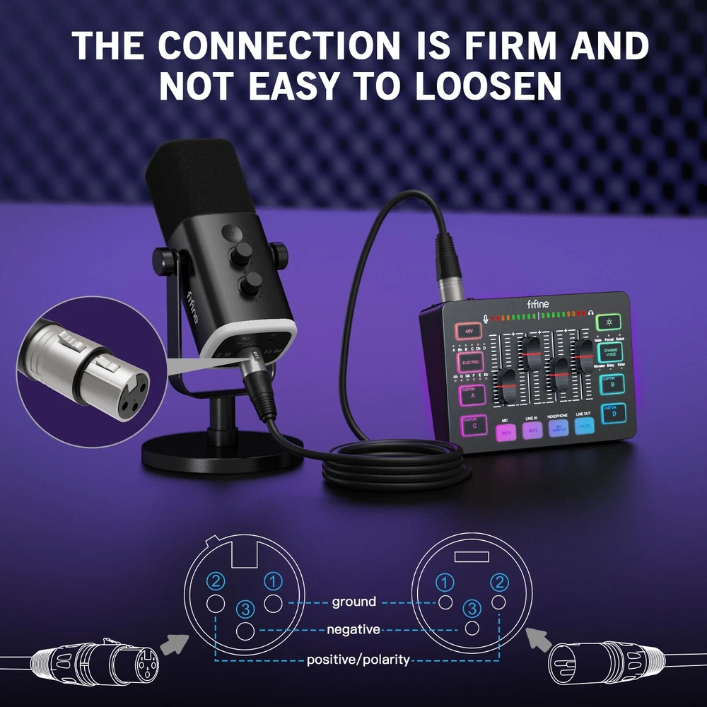 Product description: The FIFINE EAM8 with the honor of red dot design award 2023 winner product, the cardioid pattern dynamic podcast microphone with XLR and USB connector pulls dual duty for play and work. XLR setup by XLR streaming mic. Studio recording microphone rejects unwanted noise to make your audio sounds clear. Plug and Play USB Connection, skip setting hassle to get start quickly. You can quickly control USB podcast microphone dynamic with tap-to-mute. Computer microphone with headphones jack upgrades your rhythm game experience and get feedback whether the real-time voice your audience hear as expected. Get the desired level via monitoring volume control when gaming recording. Suitable for PC Computer gaming, streaming, podcast, broadcast, recording, singsing, vocal ect. Coming with RGB, featured with 3 kinds of RGB modes, including dynamic RGB flowing, breathing gradient and single color choice, presents more than 10 colors. Dynamic microphone USB built with soothing RGB matches your PC making amazing synergy and brings vitality to live streaming. Features: [Natural Audio Clarity] Operated with frequency response of 50Hz-16KHz, the podcasting XLR mic delivers balanced audio range. Directional cardioid dynamic microphone corded will not exaggerate your voice, while rejects unwanted off-axis noise for vocal originality and intelligibility during your gaming streaming video recording.XLR microphone audio cable ensures pristine audio quality, delivering clear and balanced sound reproduction for professional-grade recordings. [XLR Connection Upgrade-Ability] Well-connected and noise-free operation, the podcasting microphone, studio recording microphone grows alongside your studio setup equipment, like sound cards and mixers, which improves vocal speaking audio flexibility to make you explore various types of music recording singing. With a flexible and tangle-resistant design, audio XLR cable allows for easy handling and hassle-free setup, enabling smooth and efficient recording sessions. [USB Connection with Handy Mute] Skip the hassle of setting something up and plug the cable to play the dynamic USB microphone directly, which suits for beginner creators or professionals’ daily podcast or conference work. You can quickly control USB podcast microphone dynamic with tap-to-mute that is independent of computer/Macbook programs to keep privacy when live streaming. LED mute reminder helps you get rid of forgetting to cancel the mute. (Only available for USB connection) [Soothing Controllable RGB] RGB ring on the desktop gaming microphone for PC, with 3 modes and more than 10 light colors collection, matches your PC gears accessories for amazing synergy even in dim room. You can control the RGB key button of the dynamic microphone USB for better game color scheme. Configured memory function, the streaming microphone RGB eliminates repeated selections and brings itself alive when power on. (Only available for USB connection) [Multiple Scene Use] The XLR/USB PC gaming microphone is a one stop shop to pull duties for both play and work, streaming, podcast, broadcast recording. Use the standing desktop microphone for gaming at home studio or take it on the go. Built-in 3/8’’ and 5/8’’ metal threads, the dynamic XLR microphone fits the most boom arm stand without external adapter. Noise-canceling windscreen cover defeats hum from nearby electrical appliances for cleaner audio. Special Features: XLR/USB Dynamic Mic Mic Mute Function Mic Volume Control Headphones Jack Headphones Volume Knob Play and Plug Metal Material Detachable USB Cable Warm Tips: 1. This gaming microphone works well with PC, laptop, Mac, PS4/PS5 via USB connection, but it is NOT compatible with Xbox. 2. The recording studio product comes with a dynamic microphone with shock mount, an 6.5ft (2m) USB C to USB cable, 9.8ft (3m) XLR Cable, a 5/8'' to 3/8'' adapter, a user's Manual (boom arm, mic stand not included). 3. When using XLR connection, it is suggested to use XLR to XLR cable for more stable audio. 4. All function keys are only available for USB connection. 5. It is recommended to keep speaking to the top of this computer gaming microphone within 2-6 inches(5-15cm) to capture loud and clear sound quality, you have to turn the gain knob to a proper level before you use it. Specifications: Type: Dynamic Polar Pattern: Cardioid Output Connection: USB/XLR Max.SPL: 120dB Frequency Response: 50-16kHz Sensitivity: -50dB±3dB S/N Ratio:>80dB Power Supply:5±0.25V Package included : 1 *Dynamic Microphone with Windscreen 1*Mic Based Stand 1*6.5ft (2m) USB C to USB Cable 1*9.8ft(3m) XLR Cable 1*User's Manual Payment : We accept payment by any of the following methods: VISA, MASTERCARD, AMEX, DISCOVER and PayPal. Please pay as soon as possible after winning an auction, as that will allow us to post your item to you sooner! Shipping : 1. We only ship to confirmed Ebay addresses. Your Ebay address must match your Shipping address. 2. If you want to change the address please E-mail us right after you pay for the item. 3. Service transit time is provided by the carrier and excludes weekends and holidays. Transit times may vary, particularly during the holiday season. 4. If you have not received your shipment within 30 days from payment, please contact us. We will track the shipment and get back to you as soon as possible with a reply. Our goal is customer satisfaction! Returns : 1. If an item is damaged on delivery, we must be notified within 3 days off the delivery date, we will then arrange for a replacement or a refund of the item (it needs to be within this time period for us to make claims with our couriers) 2. If you have simply changed your mind or no longer require the item(s), you must notify us within 30 days from receiving your order. The item(s) must be in their original unused and unopened packaging and be in a resalable condition for a full refund. You will need to pay for the cost of returning the item(s) 