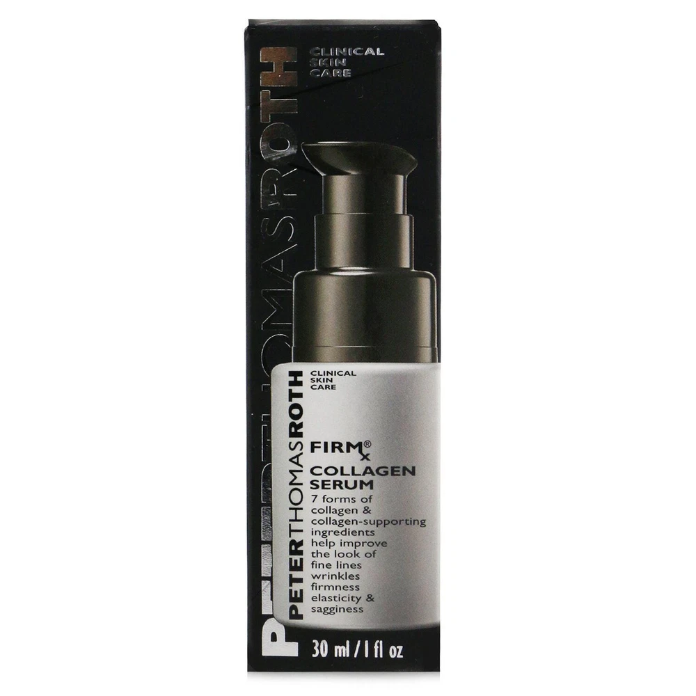 Specification Brand:Peter Thomas Roth Product BarCode:670367935309 Product Size:30ml/1oz Country Of Origin:US Country of Manufacture:UNITED STATE (US) Details Powered by three forms of collagen: Marine Collagen, Plant Collagen & Hydrolyzed Collagen Helps improve the look of fine lines, wrinkles & firmness Contains four collagen-supporting Ingredients including Hydroxyproline, Peptides, Collagen Amino Acids & Fatty Acids Infused with 5% Hyaluronic Acid Complex & Squalane for hydrating benefits Fortified with patented 2% Uplevity™ Tetrapeptide to fight the look of sagginess Skin becomes firmer, softer, smoother, more elastic & younger-looking