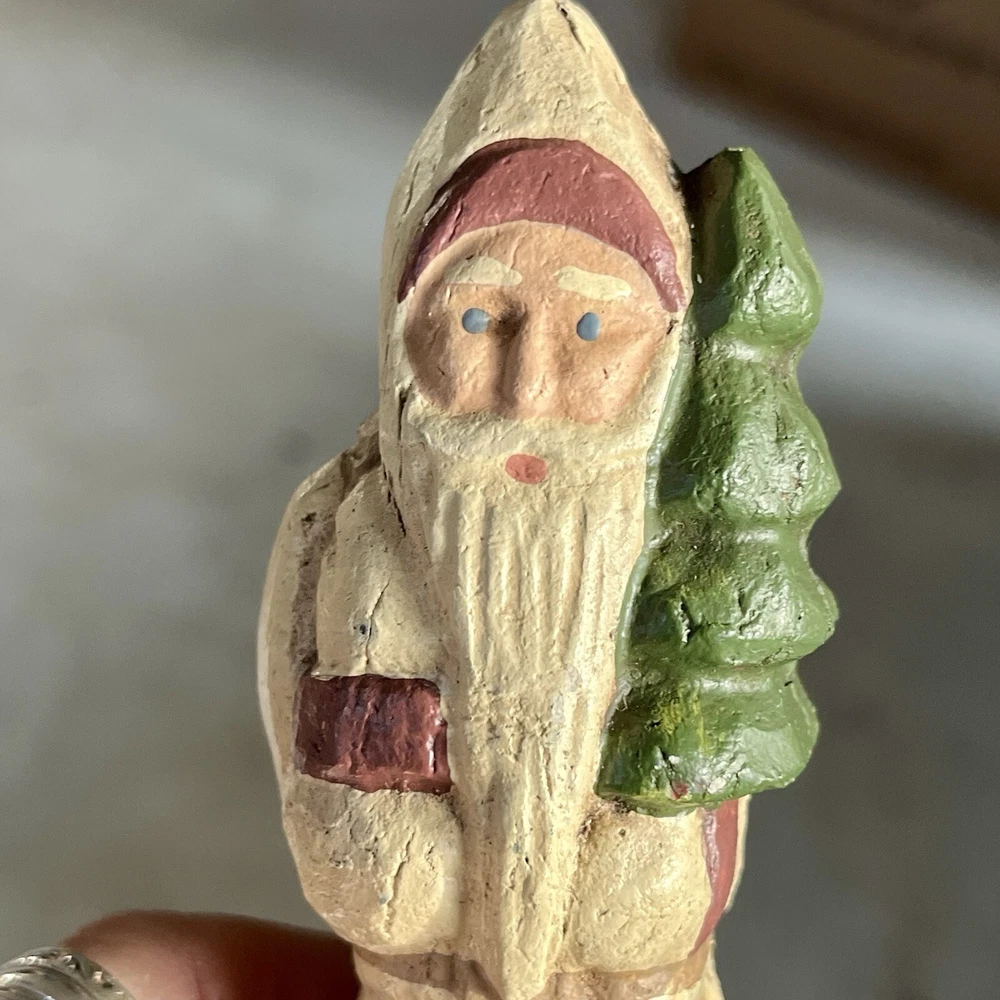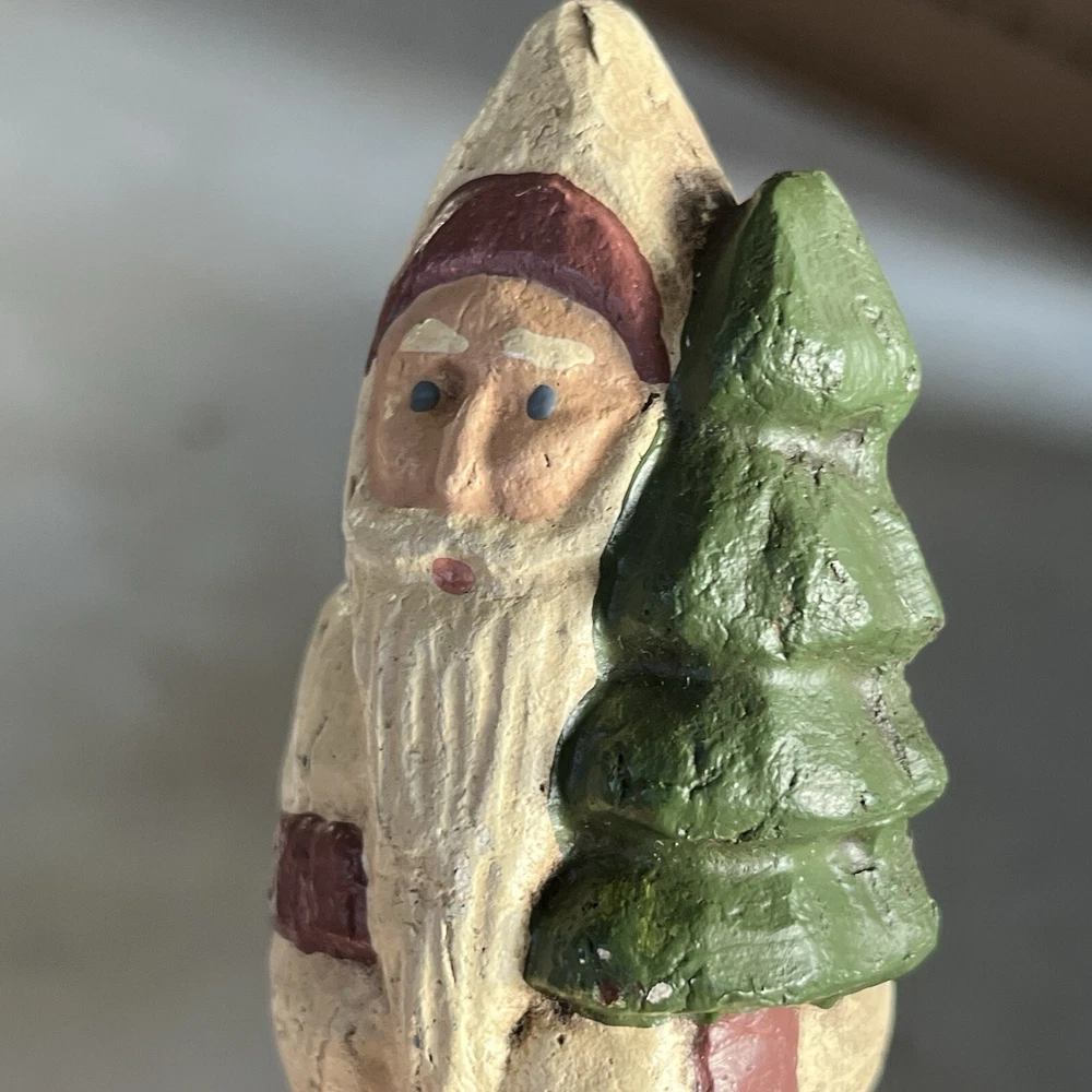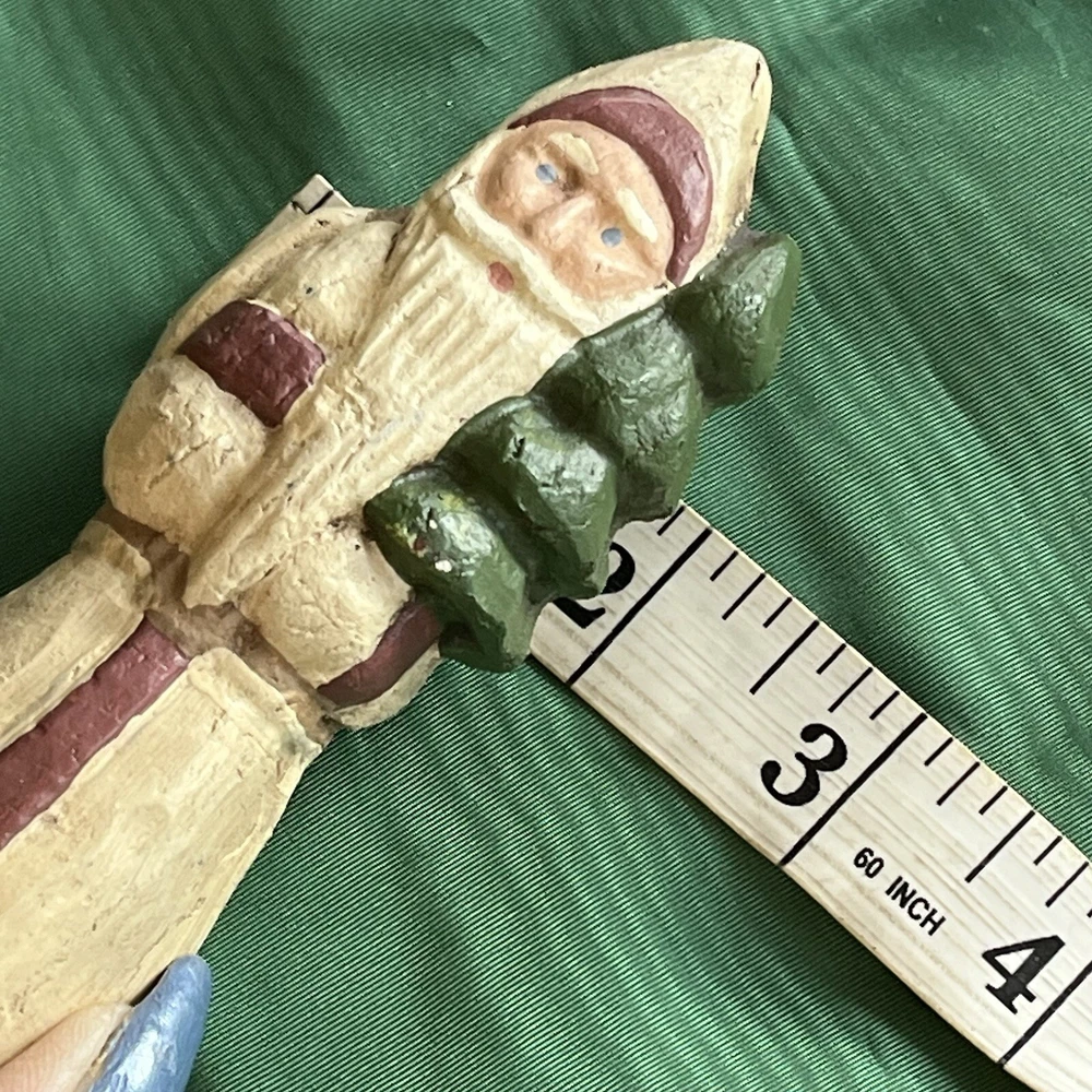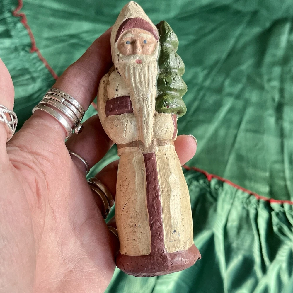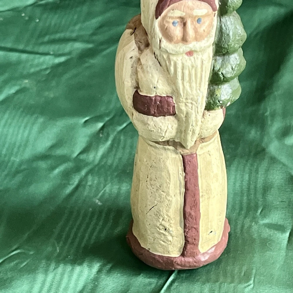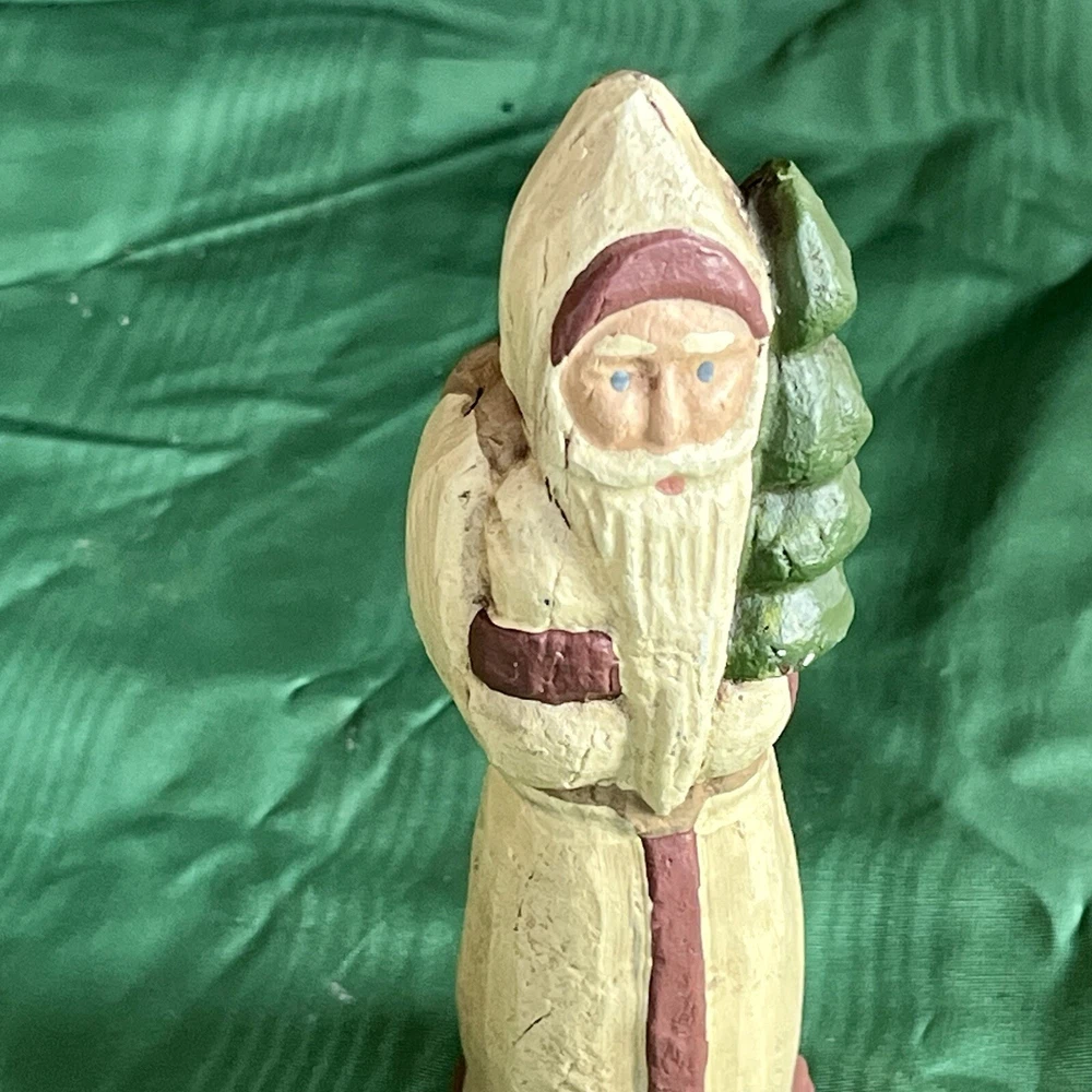 FOLK ART 1988 HAND CARVED wolflend SANTA WITH Xmas TREE SIGNED, DATED and Number