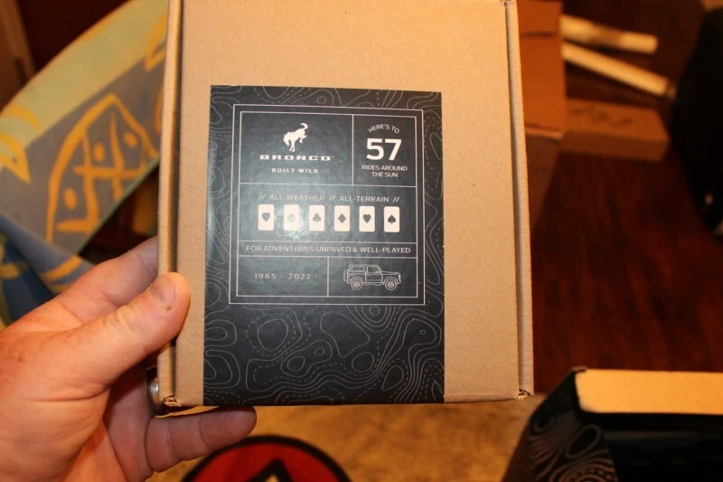 FORD BRONCO FACTORY BONUS ITEMS THAT WERE SHIPPED TO A FEW PEOPLE WHO ORDERED THE NEW BRONCO EARLY! This is the schwag meant to pacify the early buyers who ordered the new Bronco. They were released during COVID and were slow to be built so they sent this stuff to try and keep us on the line. We were the in the first 100 orders and we ordered two! We started getting a new item every few weeks about 5 months in. These are hard to get limited items! This listing includes all the new following items: -FLAG THAT IS WRAPPED UP IN THE SOFT PAPER, NEVER PULLED IT OUT OF THE ORIGINAL TISSUE PAPER. -BRONCO HAMMOCK THAT YOU CAN SEE IN THE ORIGINAL BOX AND NEVER PULLED OUT OF THE BAG. -DECK OF BRONCO CARDS STILL IN ORIGINAL WRAPPER. -3D BRONCO FOLD OUT CALENDAR WITH HOLDER THAT CAN BE USED AS BUSINESS CARD HOLDER AS WELL. THE CALENDAR IS 2021 OR 2022 BUT ITS MEANT TO SEPERATE 3D ART FROM ACTUAL DATE CARD TO FRAME OR ??? ALL 4 ITEMS ARE RARE RARE RARE AND HARD TO GET ON THE OPEN MARKET AS THEY ARE LIMITED EDITION SHORT RUN ITEMS! Take a look at the pictures and let them be the best and final description. Be sure to ask any questions prior to bidding or buying as this listing is not returnable as shipping costs are too expensive to play games. PLEASE READ ALL BELOW AS WELL! THANKS Shipping will be $20 via USPS OR FEDEX GROUND fully insured with tracking information provided. PAYMENT: Please make payment via EBAY check out system. If you have any questions please make them prior to bidding. BE SURE YOU WANT THIS ITEM AS THERE WILL BE NO REFUNDS JUST BECAUSE YOU HAVE BUYERS REMORSE! THIS ITEM IS AS-ADVERTISED AND IS AS-DESCRIBED SO BE SURE YOU WANT IT PRIOR TO BIDDING! SHIPPING IS WAY TO EXPENSIVE THESE DAYS TO PLAY GAMES. You can see by our feedback that we do not have issues at all and do not want issues so if you are a problematic person with a case of the bummers with a constant case of buyers remorse....please go away and do not bid on our items! I wish I could say i was just joking but we have been on EBAY for over 22 years now and 99.9% of the people we have met are great, but we have also met a crackpot or two! CRACKPOTS GO AWAY! RELAXED MELLOW PEOPLE WELCOME AND WANTED! π π βπ!
