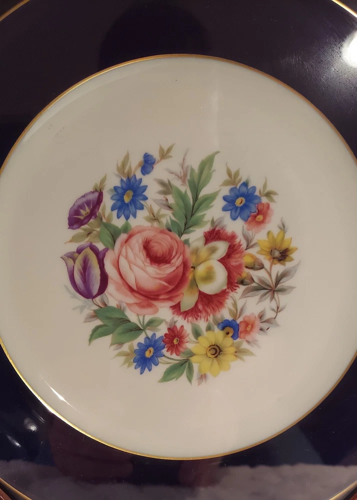 FRAMED - Rosenthal Bavaria Floral Floral Cobalt & Gold 10 1/2 Inch Plate Vintage Framed Dimension: 13.5" x 13.5" x 2.0" Found within the contents of an estate. No further information available. Thank you for looking!