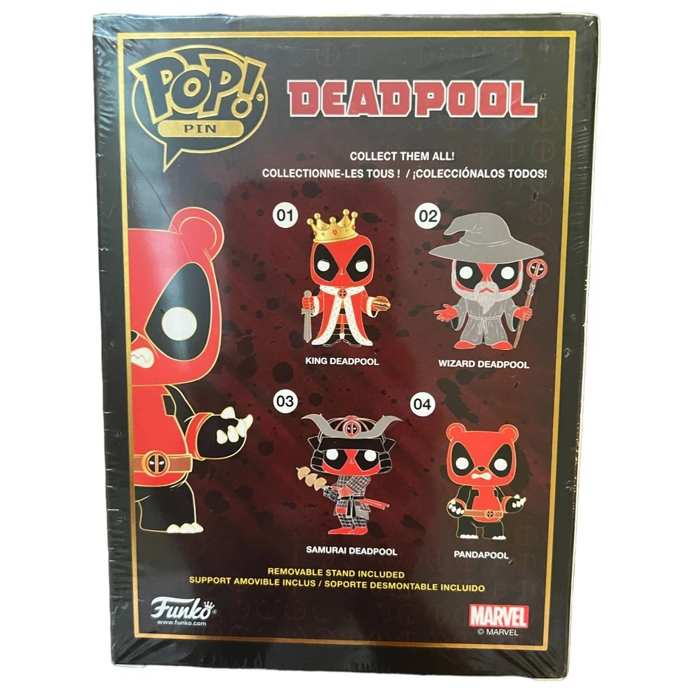T he Funko Pop! Pins: Deadpool #04 Pandapool Enamel Pin: "Introducing the adorable and mischievous Pandapool in the form of a Funko Pop! Pin! This enamel pin captures the playful essence of Deadpool as he transforms into Pandapool, a unique and charming variant. With its vibrant colors and intricate details, this enamel pin is a must-have for Funko Pop! collectors and Deadpool fans. The Funko Pop! Pins: Deadpool #04 Pandapool Enamel Pin is a 2022 release and comes sealed in its original packaging, ensuring its pristine condition. Whether you're an enamel pin enthusiast or a die-hard Deadpool supporter, this pin is a fantastic addition to your collection. Pin it to your backpack or jacket, or display it on a pin board to showcase your love for the Merc with a Mouth in his adorable Pandapool form. Don't miss the chance to own this limited edition enamel pin that perfectly captures Deadpool's fun and quirky spirit!