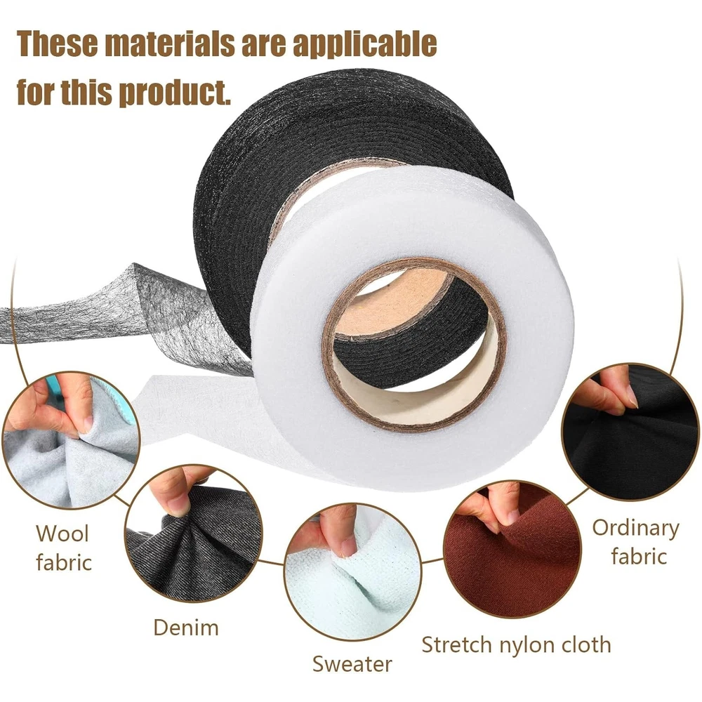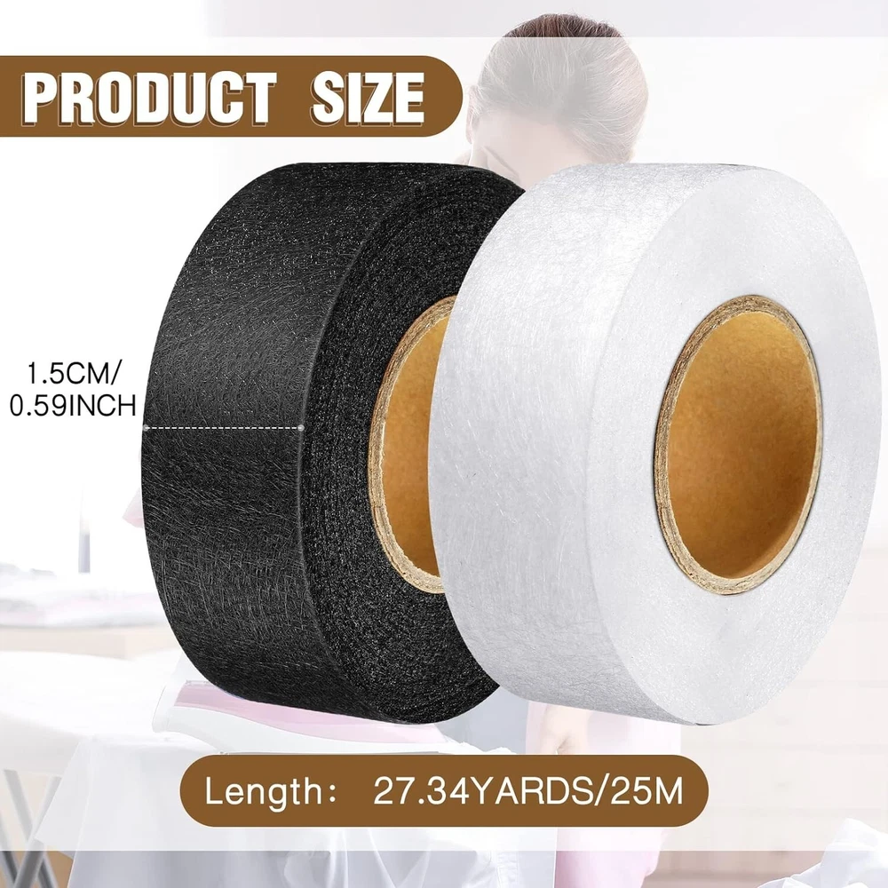 Fabric Iron on Mending Tape No Sew Repair Clothing White 27 Yards 1/2 Inch New Size: 27 Yards Each Color Black, White Material Fabric Number of Items 2 Recommended Uses For Product Arts And Craft Fabric fusing tape:hem tape width is 1/2 inch, length is 27 yards, 2 rolls of hem iron-on tapes, good for hems, no sew pillow cases, double backing ribbons and curtains, sufficient length for your daily use and replacement needs Easy to Apply: press the clothes flat, cut a piece of tape and place it at the seam, wet the surface of the clothes, and then place the iron on top for about 10 seconds; Move the iron back and forth; The temperature of the iron should be above 150 degrees Celsius Time-saving and wear resistant: hem tape makes strong and reliable work to take place of stitches in most crafts and repairs, resulting wear resistant stronger bond Sturdy seal: hem iron-on tape help seal cloth tight, the hem is still holding strong after several washes and the fabric can be washed or dry cleaned Normal application: fabric fusible bonding web tape is regular weight and can be applied for hemming broken of cloths, fabric arts and crafts and DIY anything