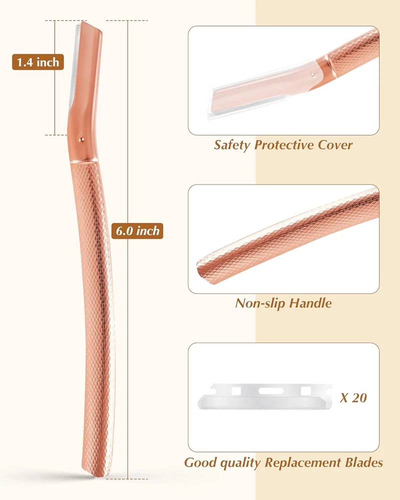 Free eBay listing template designed by dewiso.com Dermaplaning Tool for Face Professional, Facial Razors for Women Face with 20 Blade Refills, Eyebrow Razor for Women and Men, Pink FREE AND FAST SHIPPING! About this item MATERIAL: eyebrow razor for women with microblades for face is made of good quality plastic and sharp stainless-steel blade, no risk of rusting, remove facial hair in minutes PACKAGE: package contains 1 pcs womens face razor peach fuzz with 20 blade refills, the size of eyebrow shaver is small, small size makes it as a great choice to be as your travel razor DESIGN: non-slip Metal handle, precise protective cover and the cutting edge with areolae surface make dermaplane razor for women face easy to use, sharp but gentle APPLICATION: facial razors for women face suits whole body and it is a great tool to removes dead skin, unwanted peach fuzz and creates a very smooth surface TIPS: the blade of dermaplaning tool for face professional is sharp, please keep it away from children and cover it when not in use,slide down gently and don't press hard when use › Product We offer a 30-Day Return Policy on items which you are not completely satisfied with. You have the option for a full-refund or an exchange of the item. No returns are available on items shipped outside of the US . Shipping We offer Free Shipping to the US and ship within 2 business days of payment, usually sooner. We use UPS express shipping. That's why your products are usually delivered within 3 days . Contact We try our very best to make sure every customer is completely satisfied. If there's a problem , message us! We're happy to help. 24/7 live chat available.