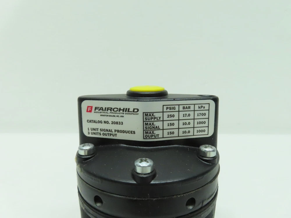 Fairchild 20833 Volume Booster 3/8in Npt 250psi Brand: FAIRCHILD Condition: New without factory packaging Model: 20833 Fitting Size: 3/8 IN Max Pressure: 250 PSI Thread Type: NPT Shipping Weight: 2.6 lbs Shipping Dimensions: 6 x 3.5 x 3 in SKU: D1030701 (PAC02) Category: Pneumatic Regulators Shipping 1. We offer Free Domestic Shipping store wide for standard ground delivery for items under 120 lbs (actual or dimensional weight). Any item over 120 lbs (actual or dimensional) is subject to freight costs. 2. We always offer combined expedited and international shipping discounts for multiple items. Final combined shipping rates will depend on the item's weight and dimensions. 3. We guarantee same-day ground shipping for all orders placed before 12:00 PM EST. Orders placed after the cut off time will be shipped out the next day. 4. We can ship through express or overnight UPS service at the buyer's expense. Our daily expedited shipping cut-off time for express shipments is 4:00PM EST 5. We offer Collect Shipping via UPS and FedEx. 6. If the item is to be shipped via Freight, please contact us for a shipping quote. You may also choose to have your shipment picked up by your carrier. We will palletize, strap and shrink-wrap your shipment. We offer a 7 day courtesy holding period for our clients. Orders are subject to cancellation after 7 days with a 20% restocking fee. 7. INTERNATIONAL BUYERS: Import duties, taxes, and charges are not included in the item price or shipping cost. These charges are the buyer's responsibility. Please check with your country's customs office to determine what these additional costs will be prior to bidding or buying. Terms of Sale 1. We offer site-wide Free Returns (Excluding Freight Shipping Orders) 2. All refund requests must be initiated within 30 days of the Date of Receipt. Transactions outside of 30 Days are not eligible for refunds. 3. We offer Full Refunds for items that are Not as Described or Non Functional. Please refer to the original listing for additional details and terms. Items must be received back for inspection prior to refund. 4. Items sold as "New" or "New (Other)" must be received back in original condition including all packaging with intact factory seals to qualify for a refund. Removing an item from the manufacturer's packaging, or tampering with Factory Seals disqualifies the item from a refund. 5. NRI is not responsible for technical specs or fitment/application of a part. Please contact our Client Relations Department for all other return inquiries. Returns 1. All refund requests must be initiated within 30 Days of Date of Receipt. Transactions outside of 30 Days are not eligible for refunds. 2. We offer Full Refunds for items which are Not as Described or Non Functional. Please refer to the original listing for additional details and terms. Items must be received back for inspection prior to refund. 3. Items sold as "New" or "New (Other)" must be received back in original condition including all packaging with intact factory seals to qualify for a refund. Removing an item from manufacturer's packaging, or tampering with Factory Seals disqualifies the item from a refund. 4. NRI is not responsible for technical specs or fitment/application of a part. Please contact our Client Relations Department for all other return inquires. About NRI Welcome to NRI Industrial Sales We strive to offer the industry an economical solution for industrial parts and equipment. We are able to offer unbeatable value on quality products as we are the direct source. We pride ourselves in our continual effort of environmental improvement by keeping hundreds of tons of obsolete parts and equipment out of landfills and scrap piles while being committed to offering it all back to you at supplier pricing. Why go to a distributor when you can get the same parts fast for a fraction of the cost? We have years of collective and comprehensive knowledge and experience in industrial materials management. This means that we are able to provide the most value and innovation per your dollar spent. We ensure that your satisfaction is guaranteed, always. Happy Shopping! NRI Industrial Store Categories Analyzers Backup UPS Ball Valves Bearings Belts Blower Pumps Brakes & Clutches Bushings Butterfly Valves Capacitors Cavity Pumps Centrifugal Pumps Check Valves Circuit Breakers Circulator Pumps Conduit Fittings Contactors Control Valves Controllers Controls Converters Cooling Fans Couplings Diaphragm Pumps Diaphragm Valves Disconnect Switches Displays Distribution Panels Diverging Valves Electric Electric Motors Electrical Enclosures Flow Indicators Flowmeters Flowtubes Fuse Holder Fuses Gage Valves Gate Valves Gauges Gear Pumps Gear Reducers Globe Valves Hand Tools Heating and Cooling Hoisting and Rigging Hubs Hydraulic Cylinders Hydraulic Filters Hydraulic Hoses Hydraulic Motors Hydraulic Pumps Hydraulic Systems Hydraulic Valves Knife Gate Valves Lab Equipment Lighting Line Reactors Machining and Milling MCC Buckets Measurement Metering Pumps Miscellaneous Motor Drives Motor Starters Multi Stage Pumps Needle Valves Oil Seal Other Pumps Other Valves Overload Relays Packaging and Labeling Piston Valves Plug Valves Plugs and Receptacles Pneumatic Cylinders Pneumatic Directional Valves Pneumatic Exhaust Valves Pneumatic Filter Elements Pneumatic Filter-Regulators Pneumatic Filters Pneumatic Grippers Pneumatic Hoses Pneumatic Lubricators Pneumatic Motors Pneumatic Regulators Pneumatic Relays Pneumatics Pressure Regulator Valves Pulleys Regenerative Blowers Relief Valves Replacement Parts Resistors Robots Roller Chains Rotary Lobe Blowers Rotary Lobe Pumps Safety and Security Safety Equipment Sensors Servo Sheaves Shock Absorbers Sleeves Solenoid Coils Solenoid Valves Split Case Pumps Sprockets Steam Traps Strainers Submersible Pumps Switchgear Temperature Controllers Tool Storage Transducers Transformers Transmitters Vacuum Pumps Valve Bodies and Manifolds Vertical Pumps Welding and 