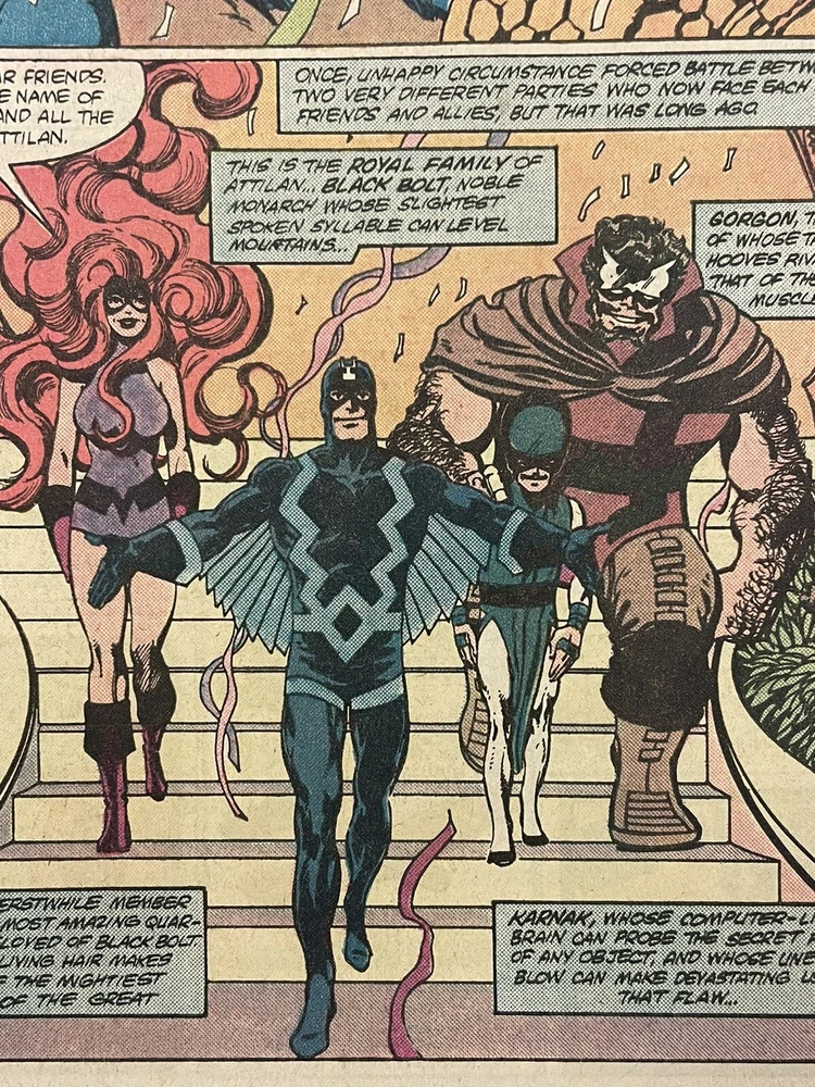 The Thing (Ben Grimm), Gorgon, Lockjaw, Triton, Invisible Girl (Sue Storm Richards), Others, Mister Fantastic, Human Torch (Johnny Storm), Medusa, Inhumans Black Bolt, LUNA, Karnak, Quicksilver, Crystal