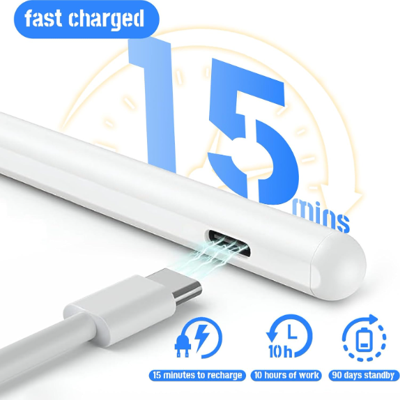 Pencil for iPad 2St Generation, Fast Charge Apple Pencil for Ipad 2018-2023, US Warehouse - FREE & FAST Shipping in US Product Description: 【Highly Responsive & Sensitive】 The stylus pen for iPad is designed to be as intuitive and responsive as a traditional pencil, allowing you to create, edit and navigate with ease. The stylus pen for iPad is equipped with a smart touch switch,press the cap button making it easy to turn on and off without disrupting your work. 【Palm Rejection& Magnetic Adsorption】 The iPad Pen has been engineered to provide palm rejection, so that it can detect when your hand is resting on the screen and will not detect any input from your palm or fingers, no need anti-friction gloves. The apple pencil also features magnetic adsorption, which allows it to attach securely to the side of your iPad for easy access and storage, prevent sliding and lost. 【Quick Charge & Power Display】 The apple Pen charges quickly via the type-C cable on your iPad fully in 15 minutes, and the power display on the pencil itself shows the remaining battery life, so you always know when it's time to recharge. After 10 minutes of standby, it will shuts off the power limited power saving. With up to 10 hours of use on a single charge, you can use the pencil throughout the day without having to worry about running out of battery. 【Compatibility】 The apple pencil 2nd generation is compatible with 2018-2023 iPad (10th, 9th, 8th, 7th, 6th generation); iPad Pro 11 inch (4th, 3rd, 2nd, 1st generation); iPad Pro 12.9 inch (6th, 5th, 4th, 3rd generation);iPad mini (6th, 5th generation); iPad Air (5th, 4th, 3rd generation). Our stylus pencil is designed to work seamlessly with iPadOS, allowing you to take full advantage of the drawing and note-taking features. 【Versatile Use】 The iPad Pencil is not just for artists and designers. The low latency and high precision make it an ideal iPad accessories for anyone. It can be used for a variety of tasks, such as sketching, taking notes, coloring, and marking up documents, even the game. ipad with pen will better enhance the sense of use and improve the efficiency of work and life. Feedback: 1.Any question for your order, please contact us in time, we will reply to you within 24 hours and give you a satisfactory answer. 2.If you are satisfied with our products and services, hope to take up your a little precious time to leave feedback reviews for our products.Thanks! 3.Your satisfaction is our effort. Welcome to order again! Have a great day! Our Policy: 100% Satisfaction Guarantee 20% of restocking fee will be charged for return item